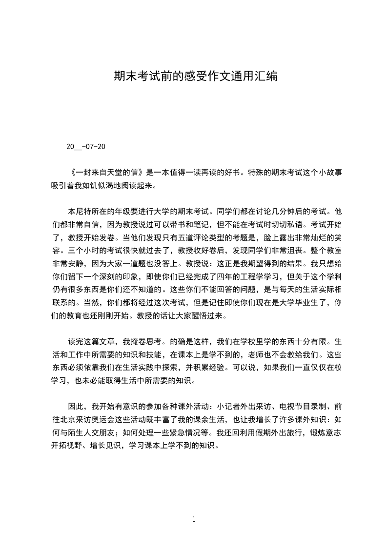 《一封来自天堂的信》是一本值得一读再读的好书。特殊的期末考试这个小故事吸引着我如饥似渴地阅读起来。
