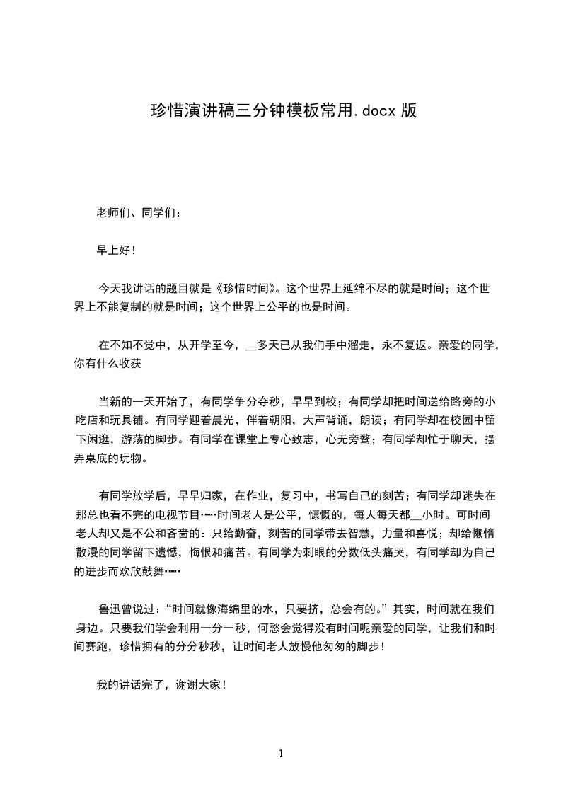 今天我讲话的题目就是《珍惜时间》。这个世界上延绵不尽的就是时间;这个世界上不能复制的就是时间;这个世界上公平的也是时间。