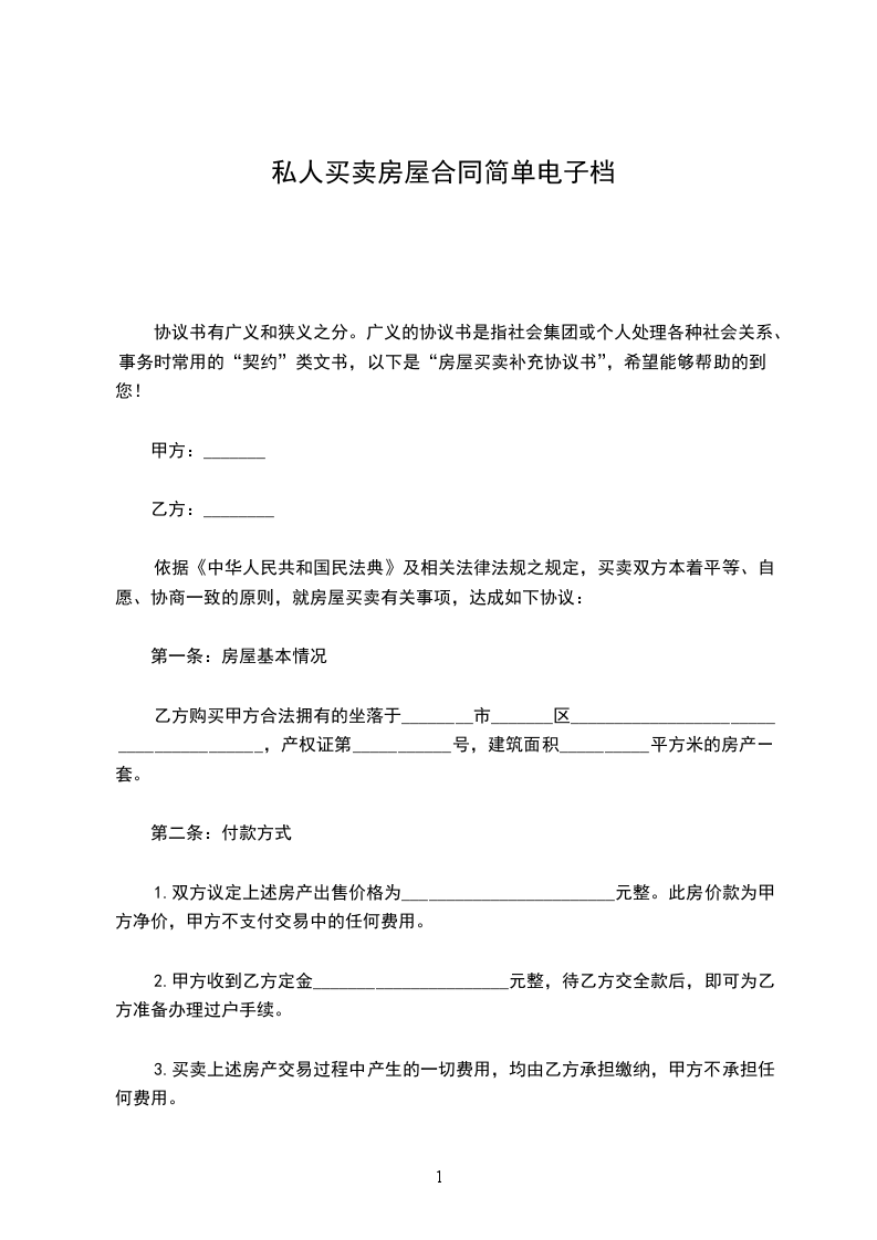 1.双方议定上述房产出售价格为________________________元整。此房价款为甲方净价,甲方不支付交易中的任何费用。