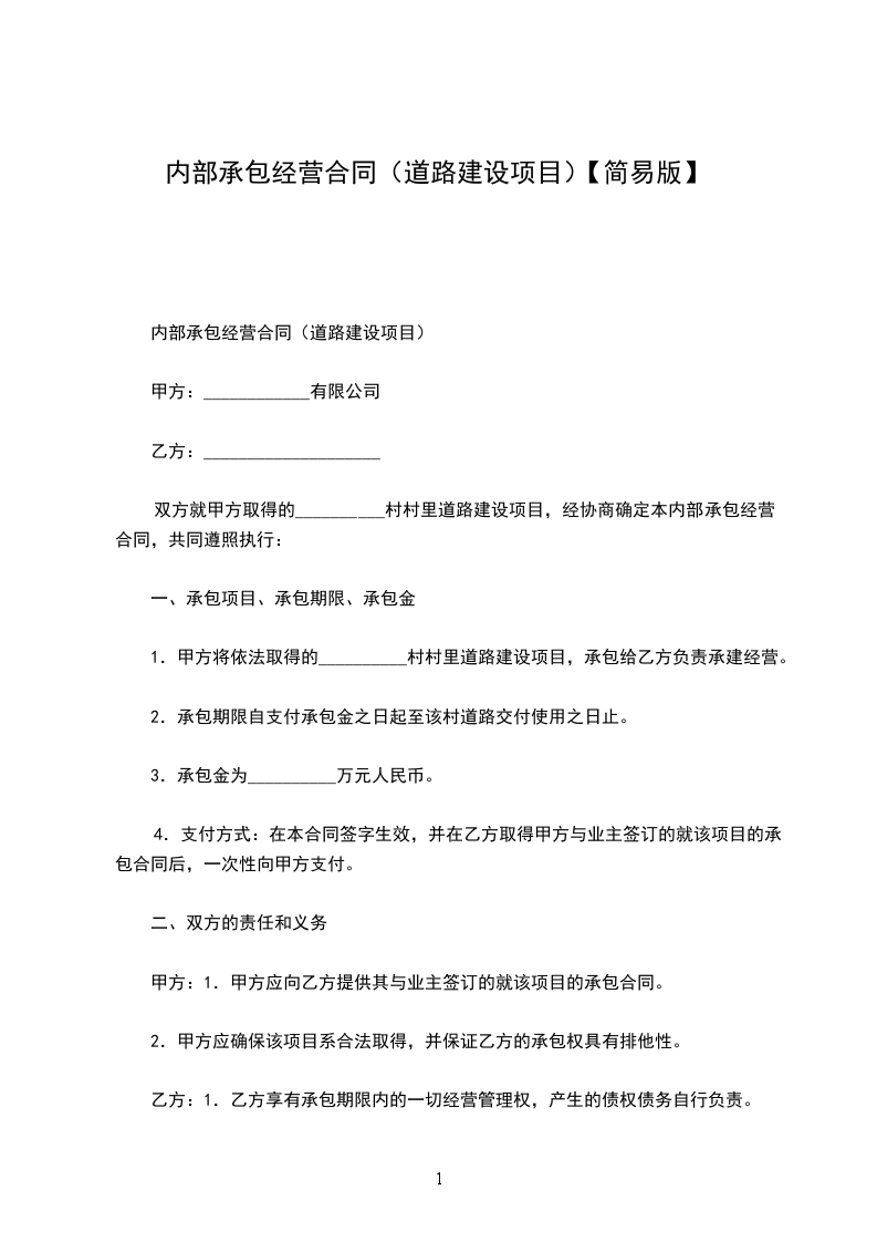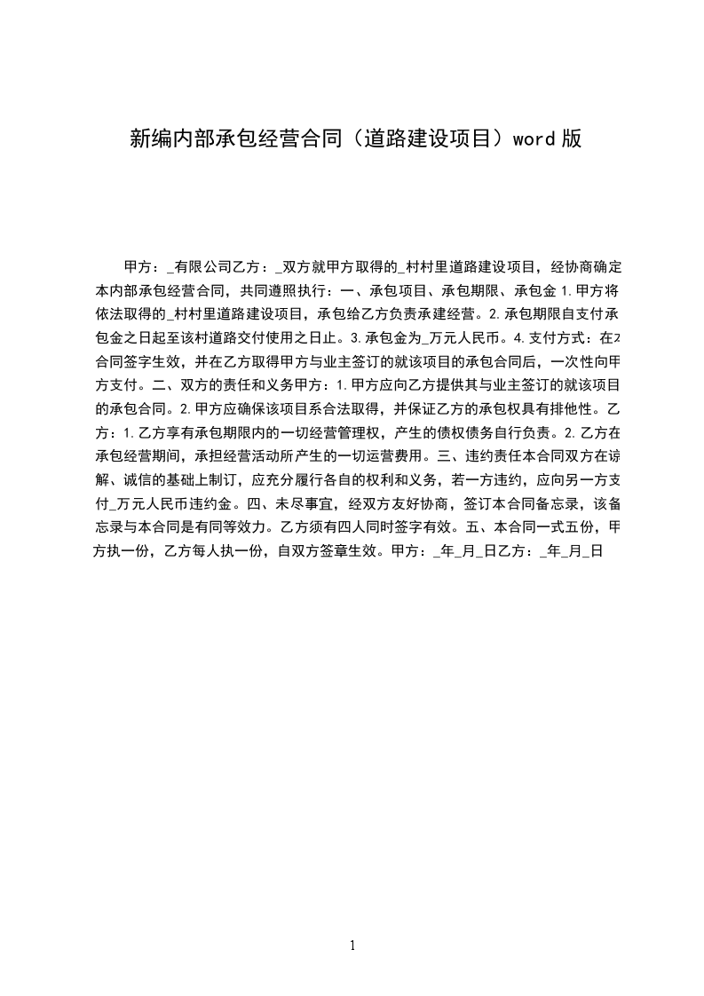 1.甲方将依法取得的__________村村里道路建设项目,承包给乙方负责承建经营。