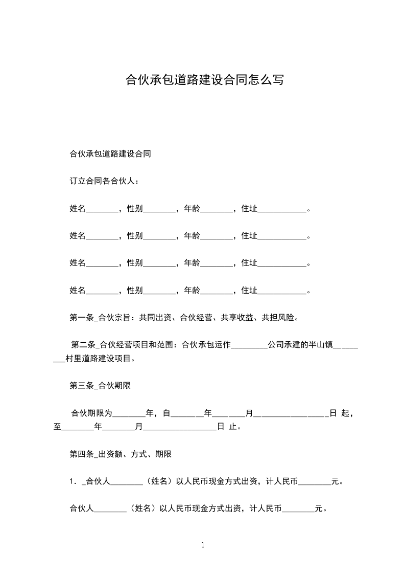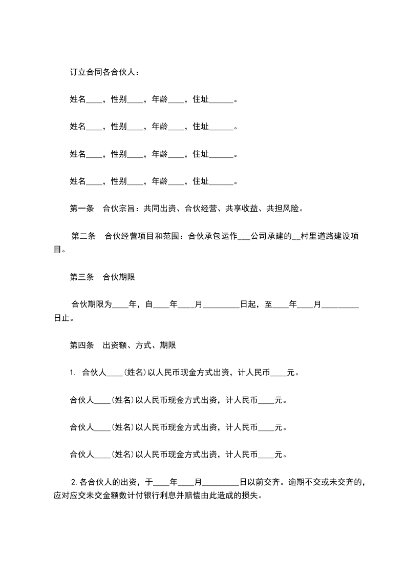 双方就甲方取得的__________村村里道路建设项目,经协商确定本内部承包合伙协议,共同遵照执行: