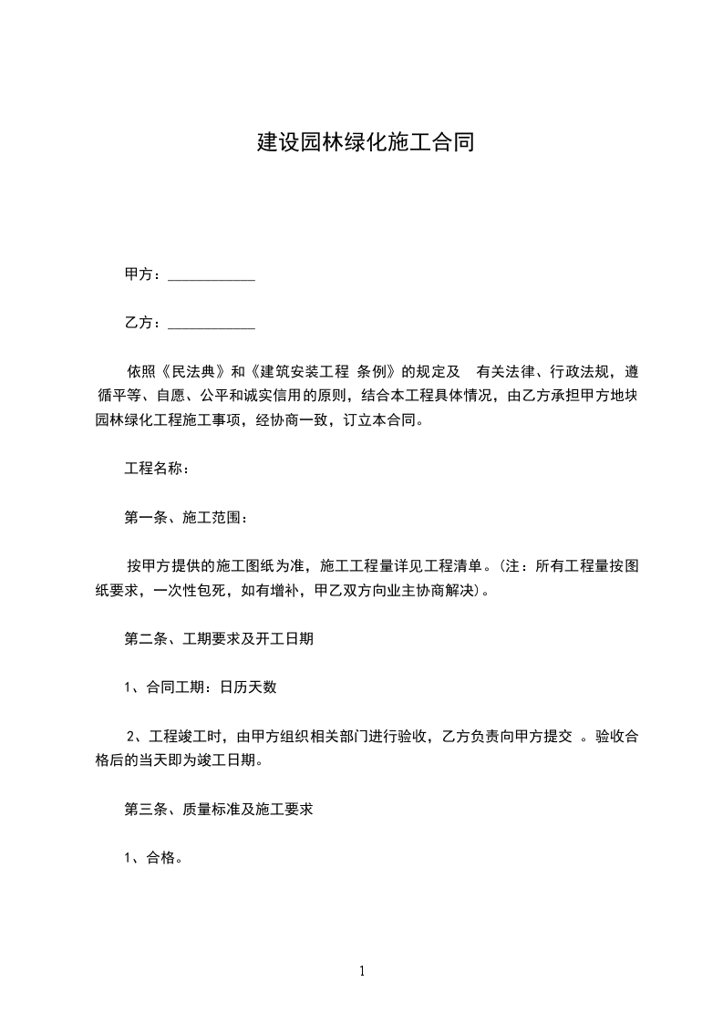 (一)质保期:从递交竣工报告后的第七日起算。保修期按建设部 年第80号令执行,普通植物保活期半年,贵重植物(1000元以上)保活期为一年,工程的其它部分保修期为一年。