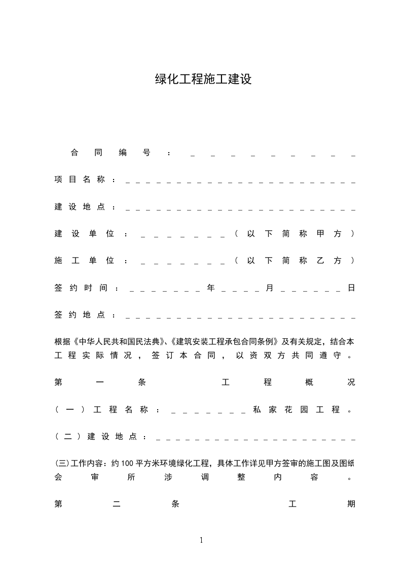 (一)工程名称:_______私家花园工程。