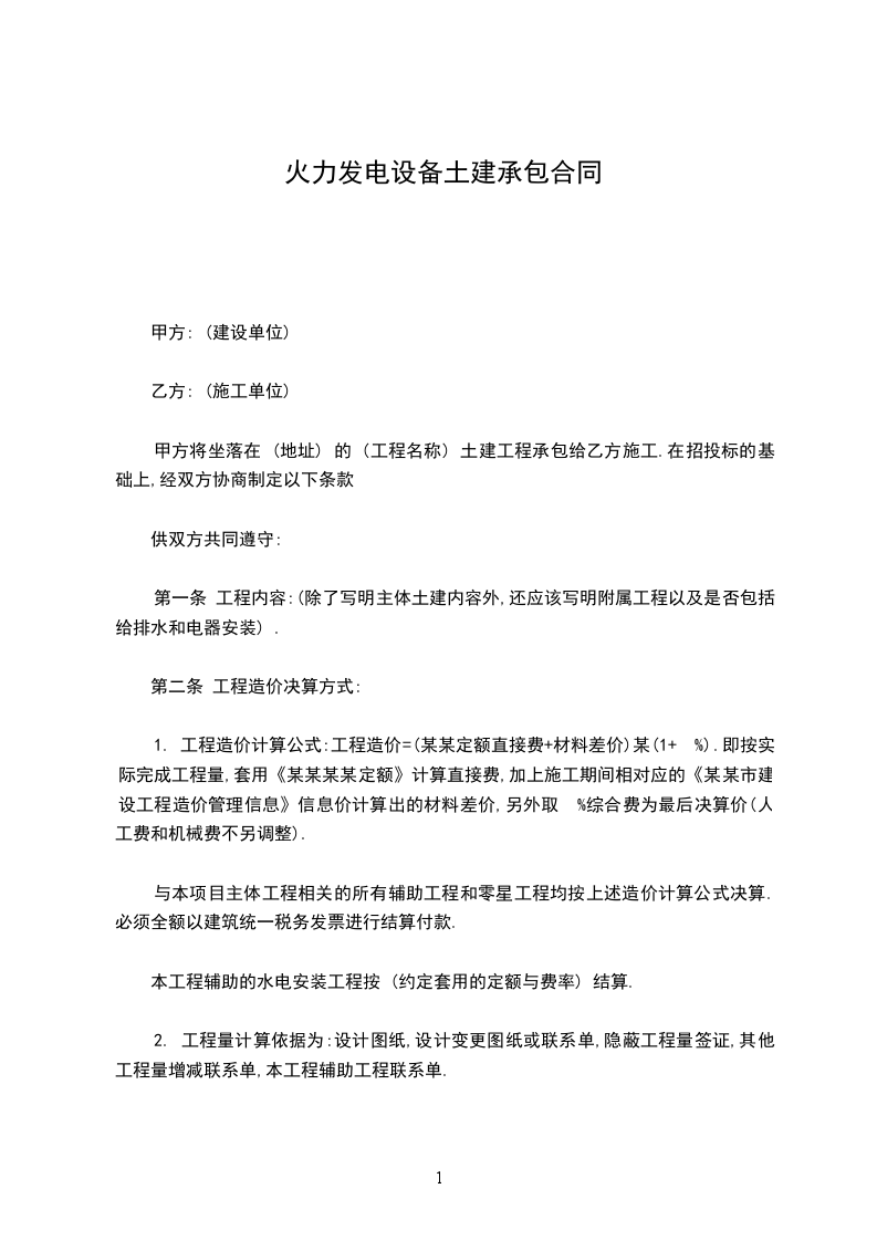 第一条 工程内容:(除了写明主体土建内容外,还应该写明附属工程以及是否包括给排水和电器安装) .