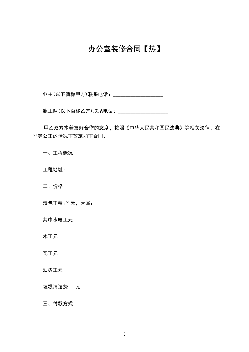 施工队(以下简称乙方): 联系电话:
