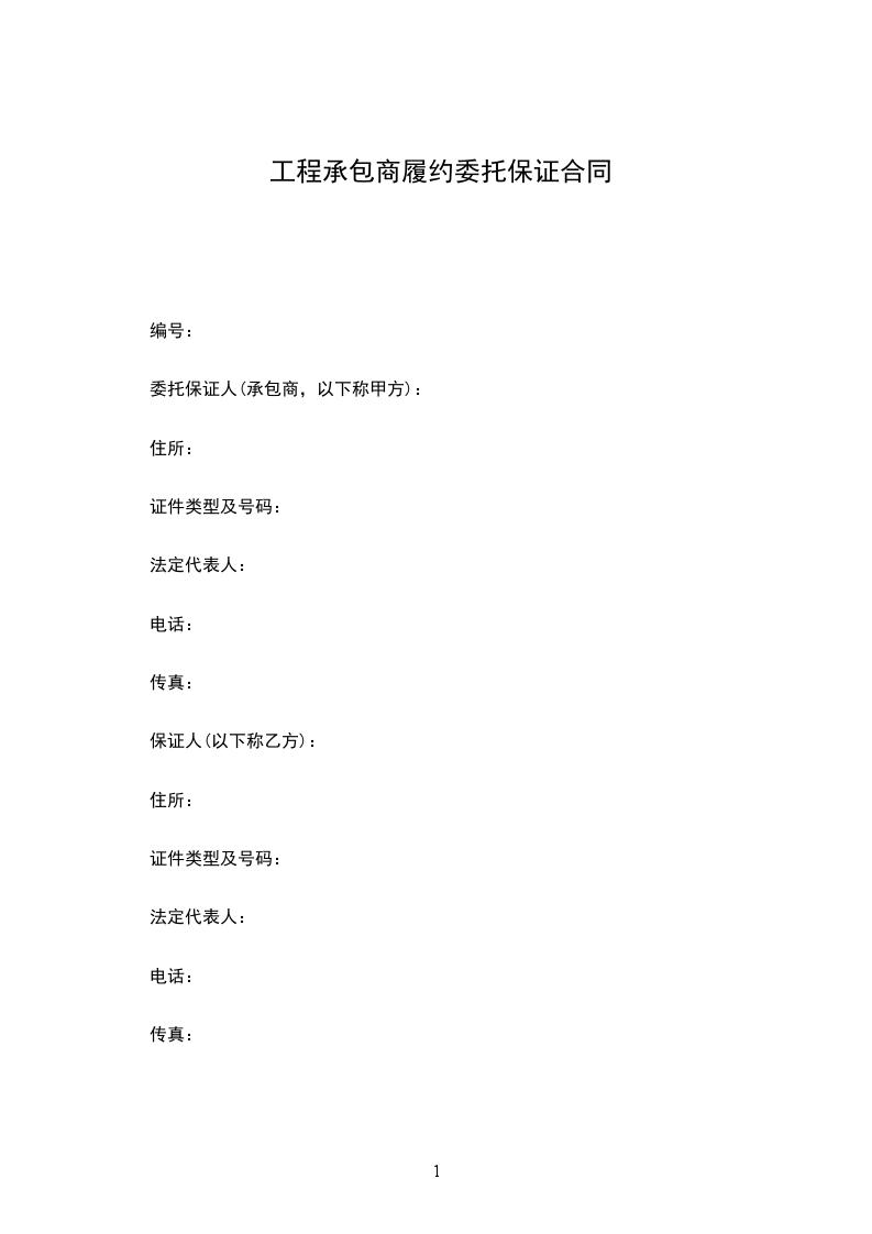 委托保证人(承包商,以下称甲方):____________