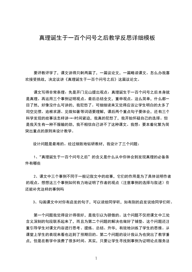 要评教评学了,课文讲得只剩两篇了,一篇议论文,一篇略读课文。怎么办我喜欢接受挑战,决定议讲《真理诞生于一百个问号之后》这篇议论文。