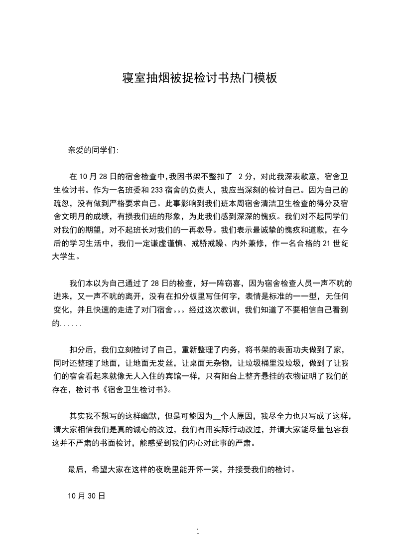 在10月28日的宿舍检查中,我因书架不整扣了2分,对此我深表歉意。。作为233宿舍的负责人,我应当深刻的检讨自己。因为自己的疏忽,没有做到严格要求自己。此事影响到我们班本周宿舍清洁卫生检查的得分及宿舍文明月的成绩,有损我们班的形象,为此我们感到深深的愧疚。。我们对不起同学们对我们的期望,对不起班长对我们的一再教导。我们表示最诚挚的愧疚和道歉,在今后的学习生活中,我们一定谦虚谨慎、戒骄戒躁、内外兼修,作一名合格的21世纪大学生。