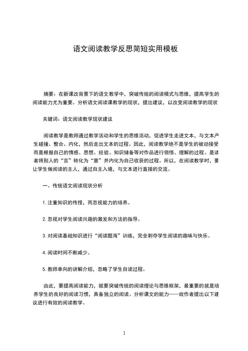 关键词:语文阅读教学现状建议