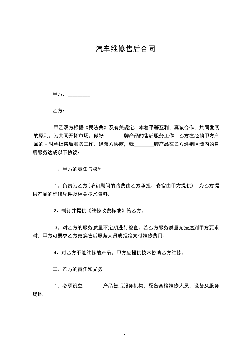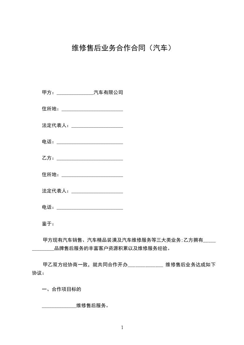 甲乙双方经协商一致,就共同合作开办______________ 维修售后业务达成如下协议: