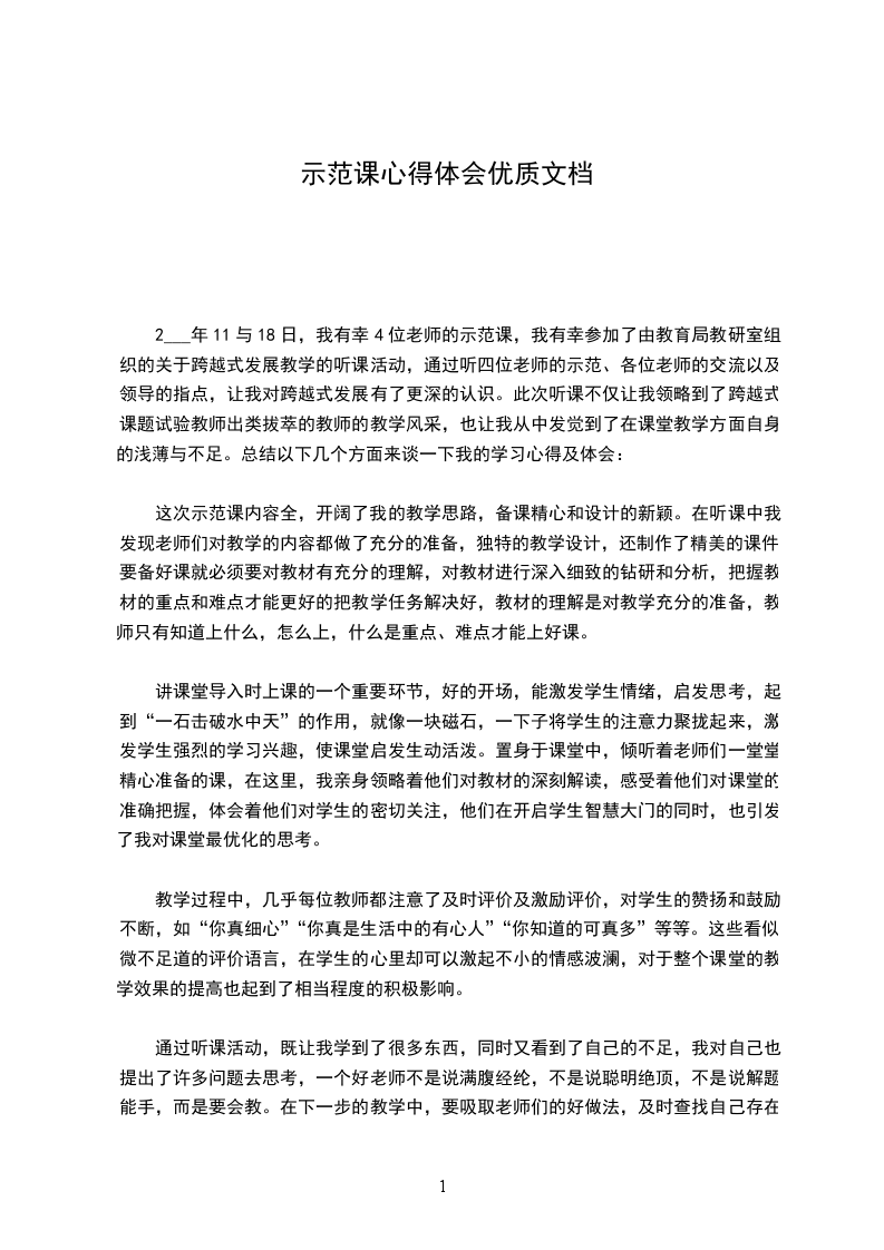 2___年4月份,在市教育局领导的大力支持及各位支教教师的精心准备下,举行了一次支教教师示范课的活动。我很荣幸,也非常庆幸地参加了学习。在此先感谢各位领导,同时,也感谢各位支教教师对我们教师的关心与你们无私的奉献!