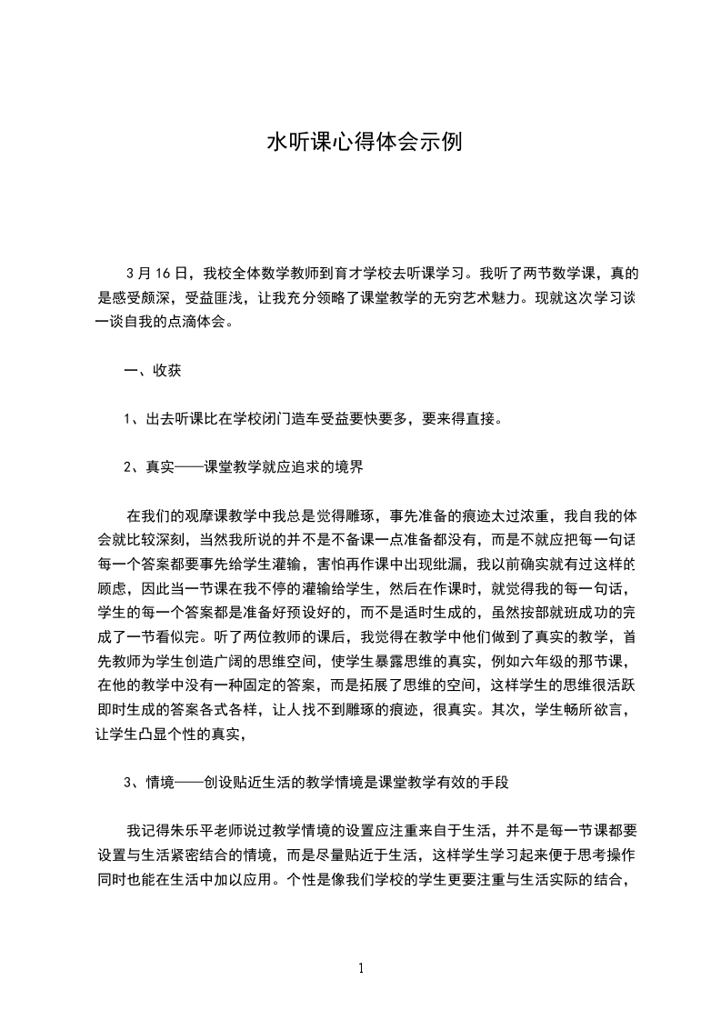 从2___年4月10日起,我细心、认真地听了四节课,每一节课,我都是怀着虚心好学的心态去认真的听课。在听课中,每一堂课,我都是认真的做好听课笔记,详细记录了当时听课时体会,抓住每一节课授课老师的闪光点,虚心吸取支教教师的先进教学经验,并力争应用到自己的教学中,现将我的听课思想作如下汇报。