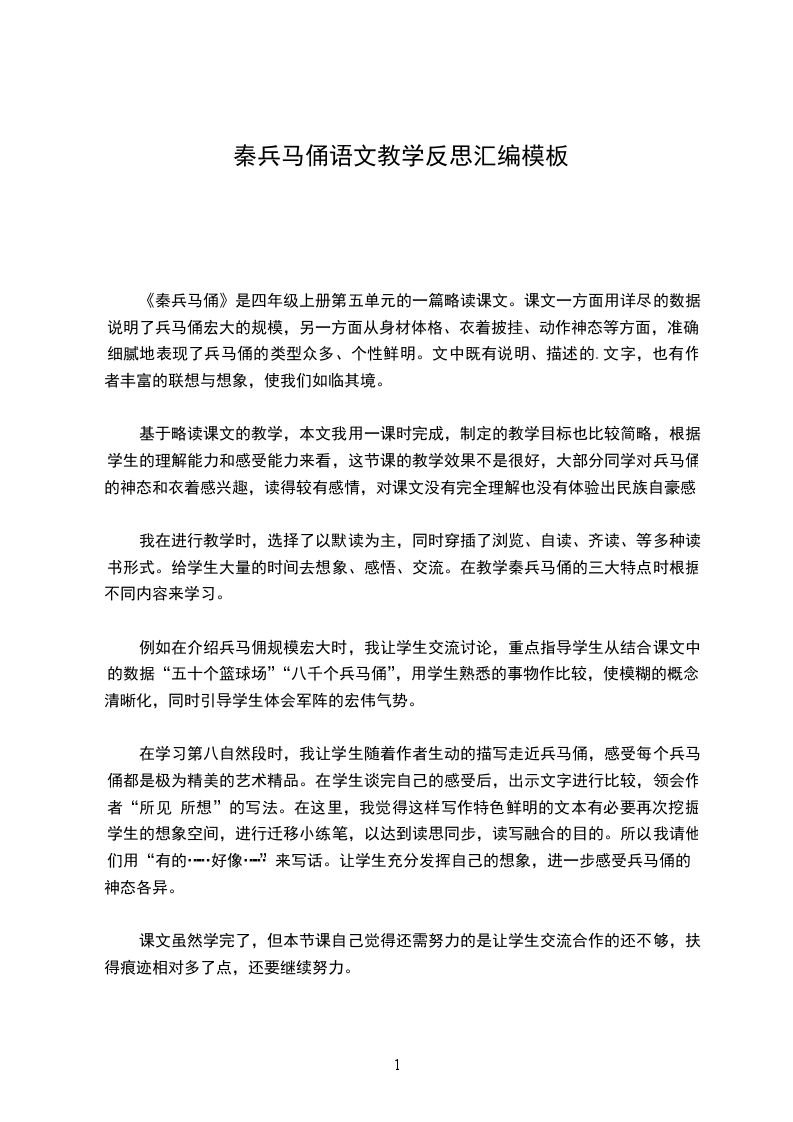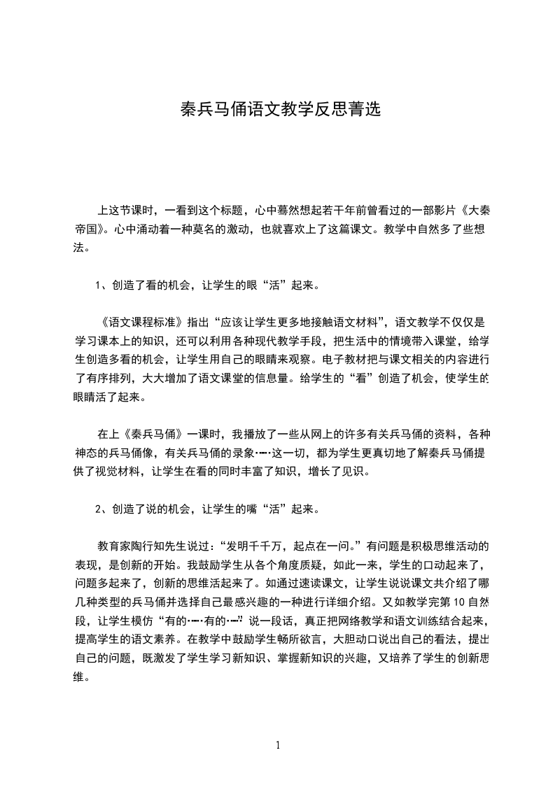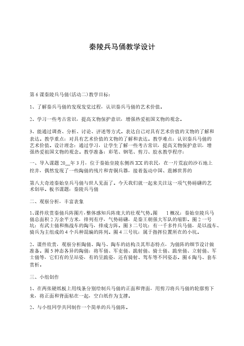 (2)准备以导游身份,将课文编成导游词,结合自己收集到的图片或音像资料,向周围人介绍秦兵马俑。这两个题目的完成我相信可以培养学生的一种成就感。