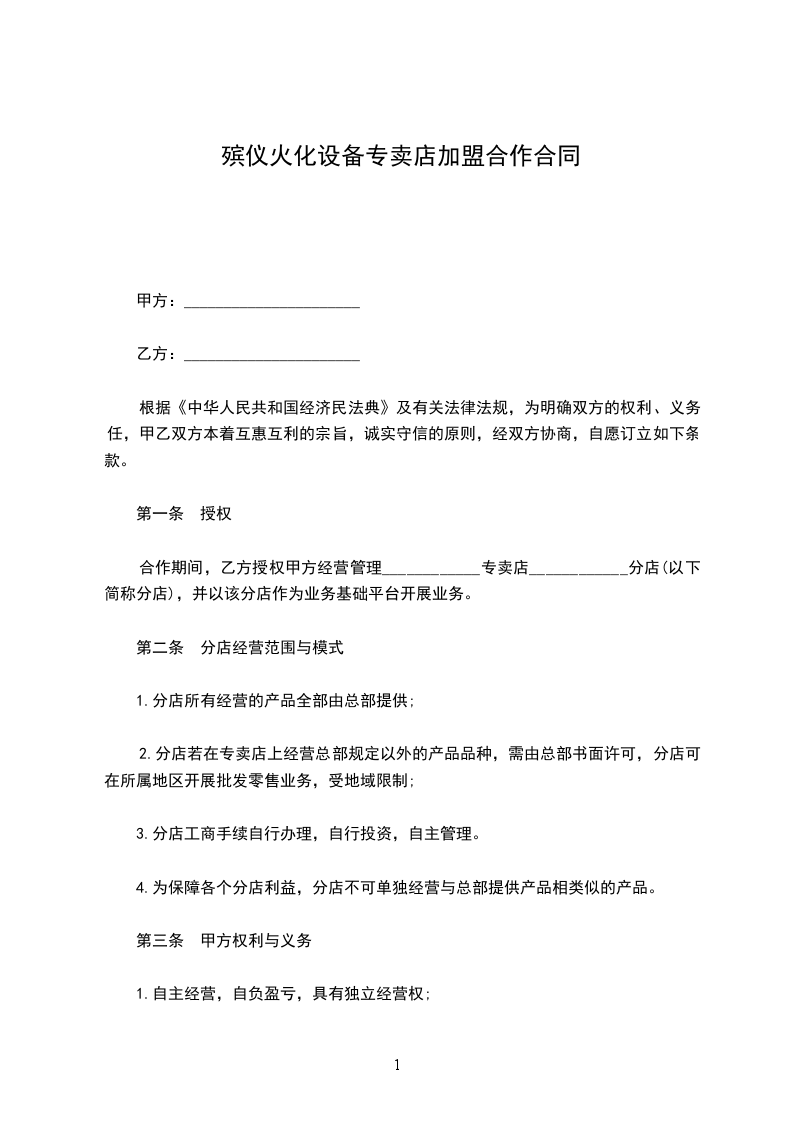 4.为保障各个分店利益,分店不可单独经营与总部提供产品相类似的产品。