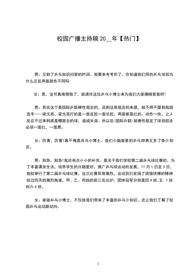 女:谢谢乒乓小博士,不仅给我们带来了丰富的乒乓小知识,还让我们了解了校园乒乓运动新动向。