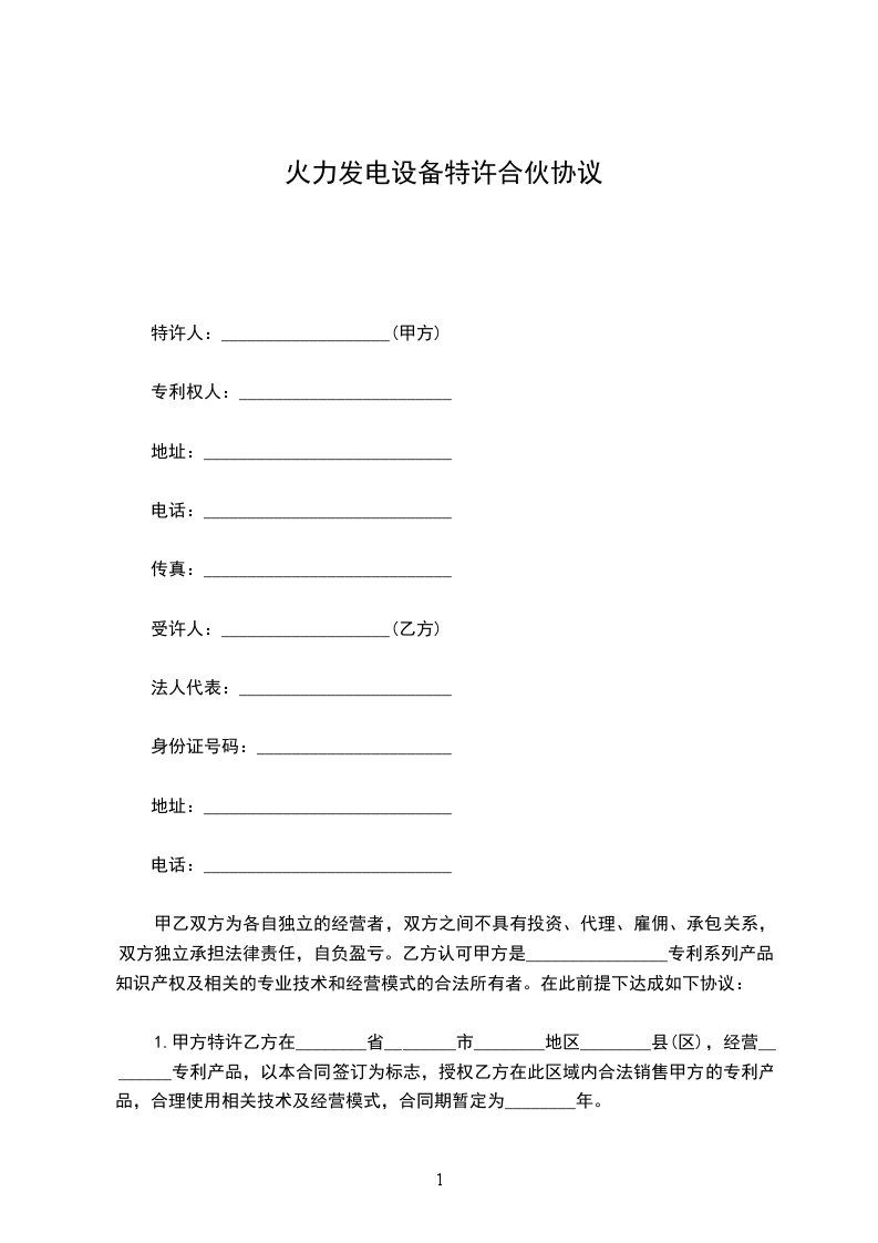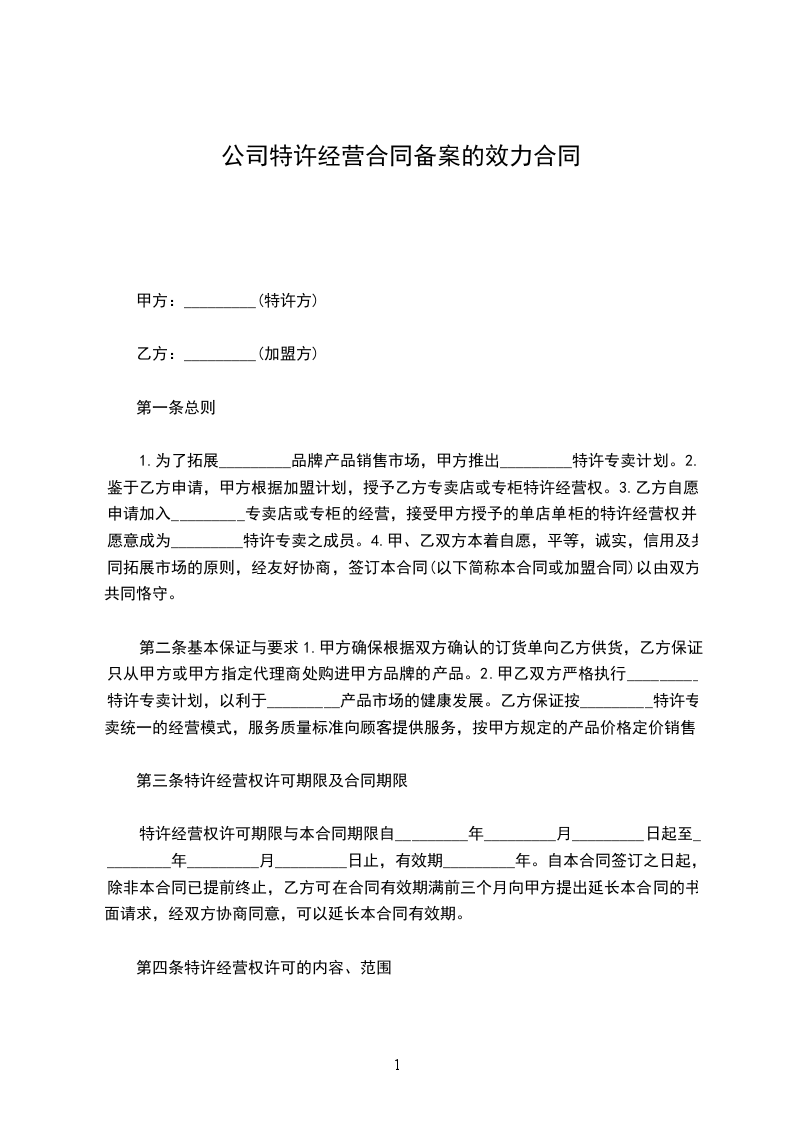1.甲方特许乙方在________省________市________地区________县(区),经营________专利产品,以本合同签订为标志,授权乙方在此区域内合法销售甲方的专利产品,合理使用相关技术及经营模式,合同期暂定为________年。