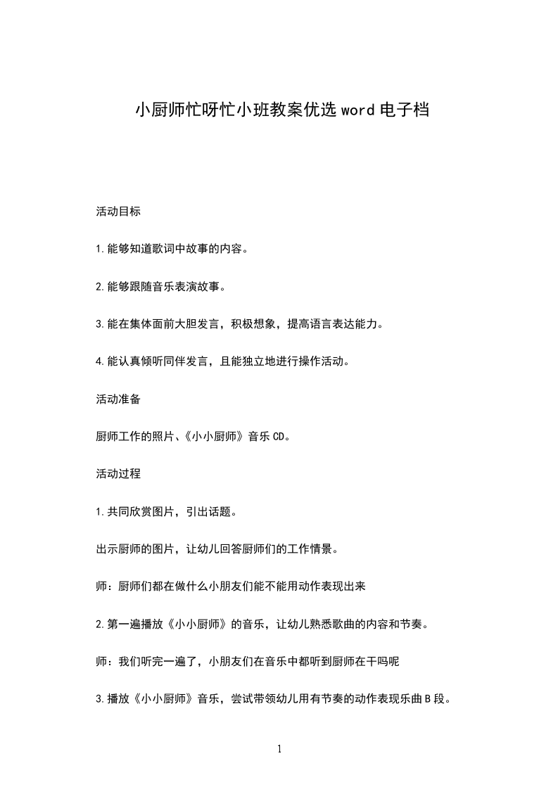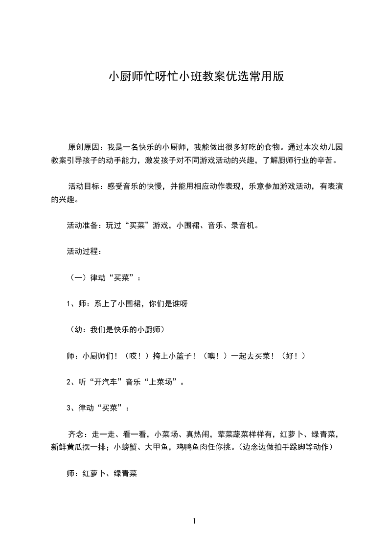 原创原因:我是一名快乐的小厨师,我能做出很多好吃的食物。通过本次幼儿园教案引导孩子的动手能力,激发孩子对不同游戏活动的兴趣,了解厨师行业的辛苦。
