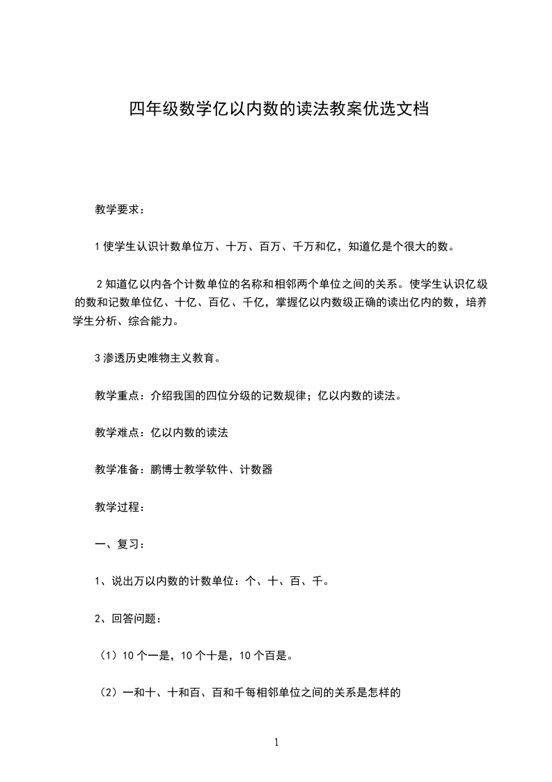 (引导复习万以内数的读法,为后面类推亿以内数的读法作铺垫.)