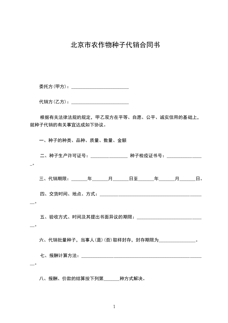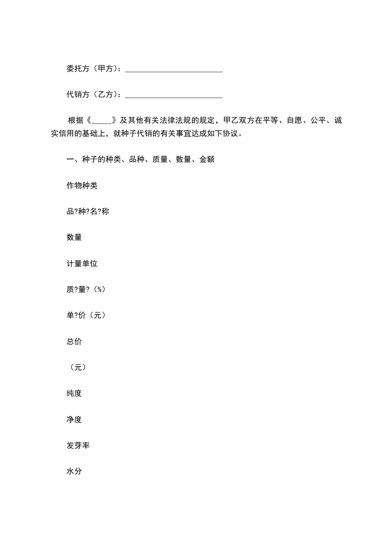 根据《中华人民共和国民法典》及其他有关法律法规的规定,甲乙双方在平等、自愿、公平、诚实信用的基础上,就种子代销的有关事宜达成如下协议。