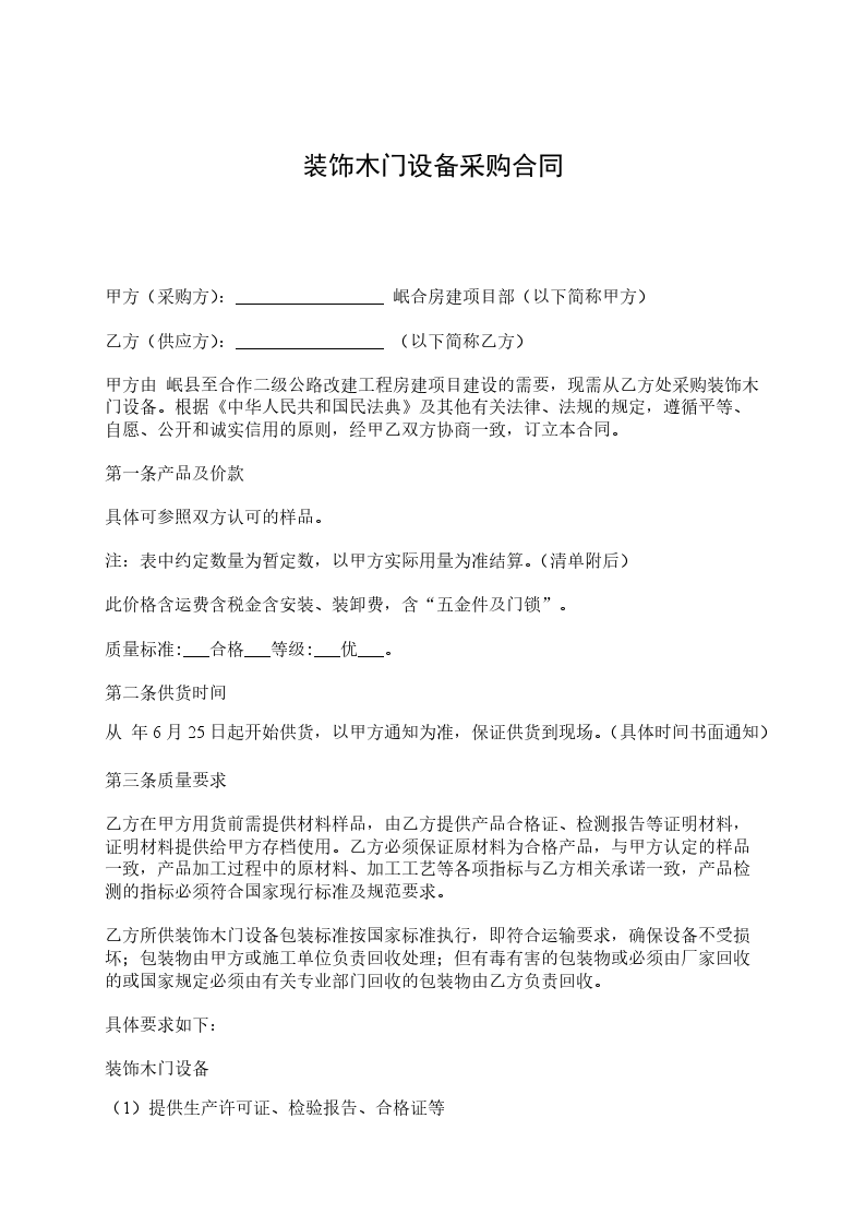 甲方(需方):____________________乙方(供方):____________________经过双方友好协商,依据《中华人民共和国民法典》,双方同意签订以下合同条款,以便双方共同遵守,履行合同.