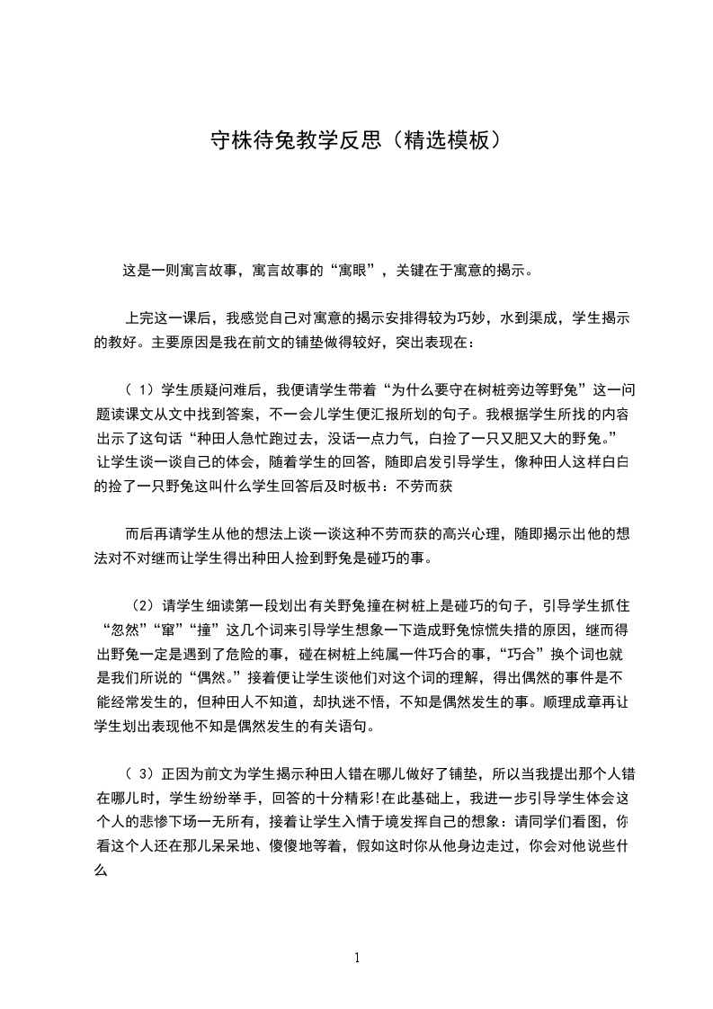 而后再请学生从他的想法上谈一谈这种不劳而获的高兴心理,随即揭示出他的想法对不对继而让学生得出种田人捡到野兔是碰巧的事。