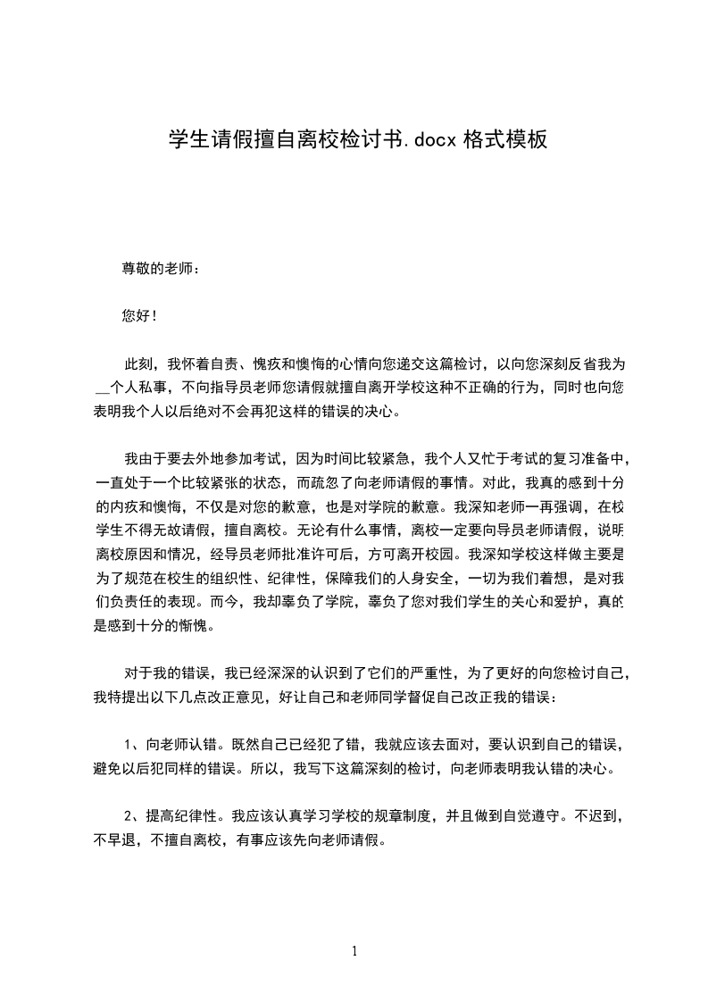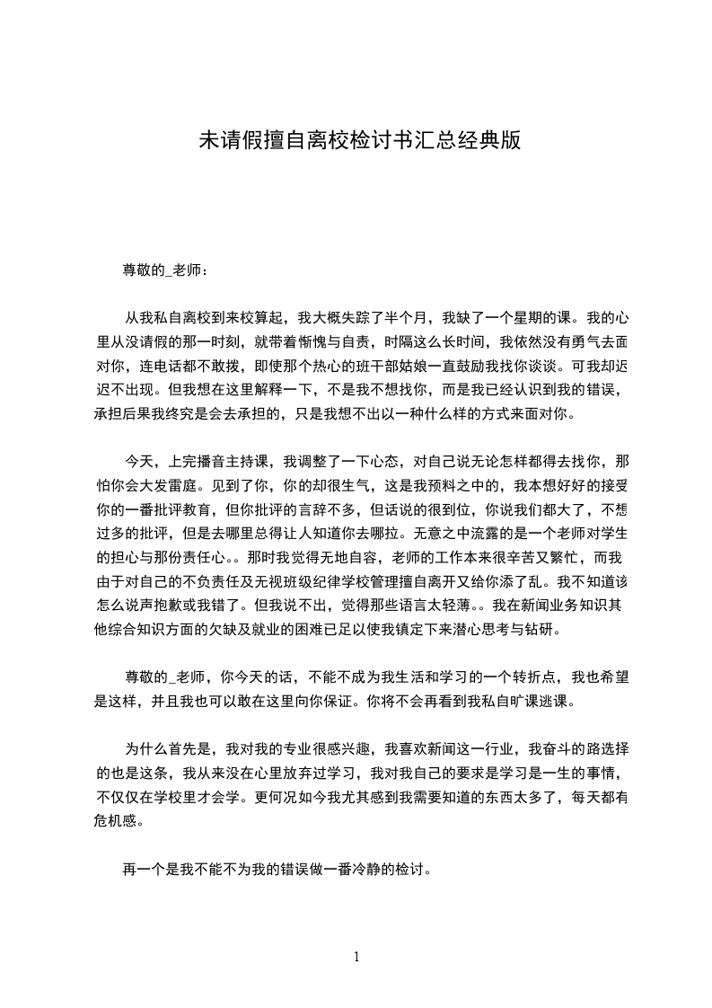 尊敬的_老师,你今天的话,不能不成为我生活和学习的一个转折点,我也希望是这样,并且我也可以敢在这里向你保证。你将不会再看到我私自旷课逃课。