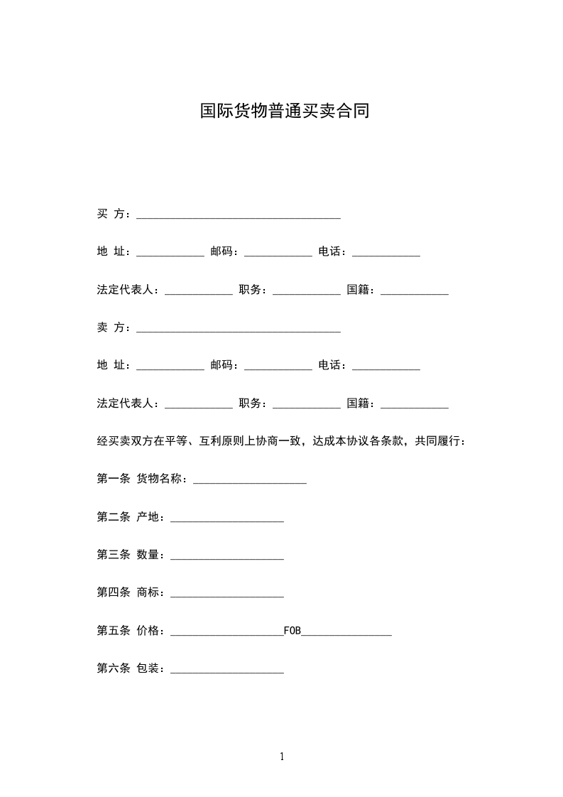 第一条 货物名称:____________________