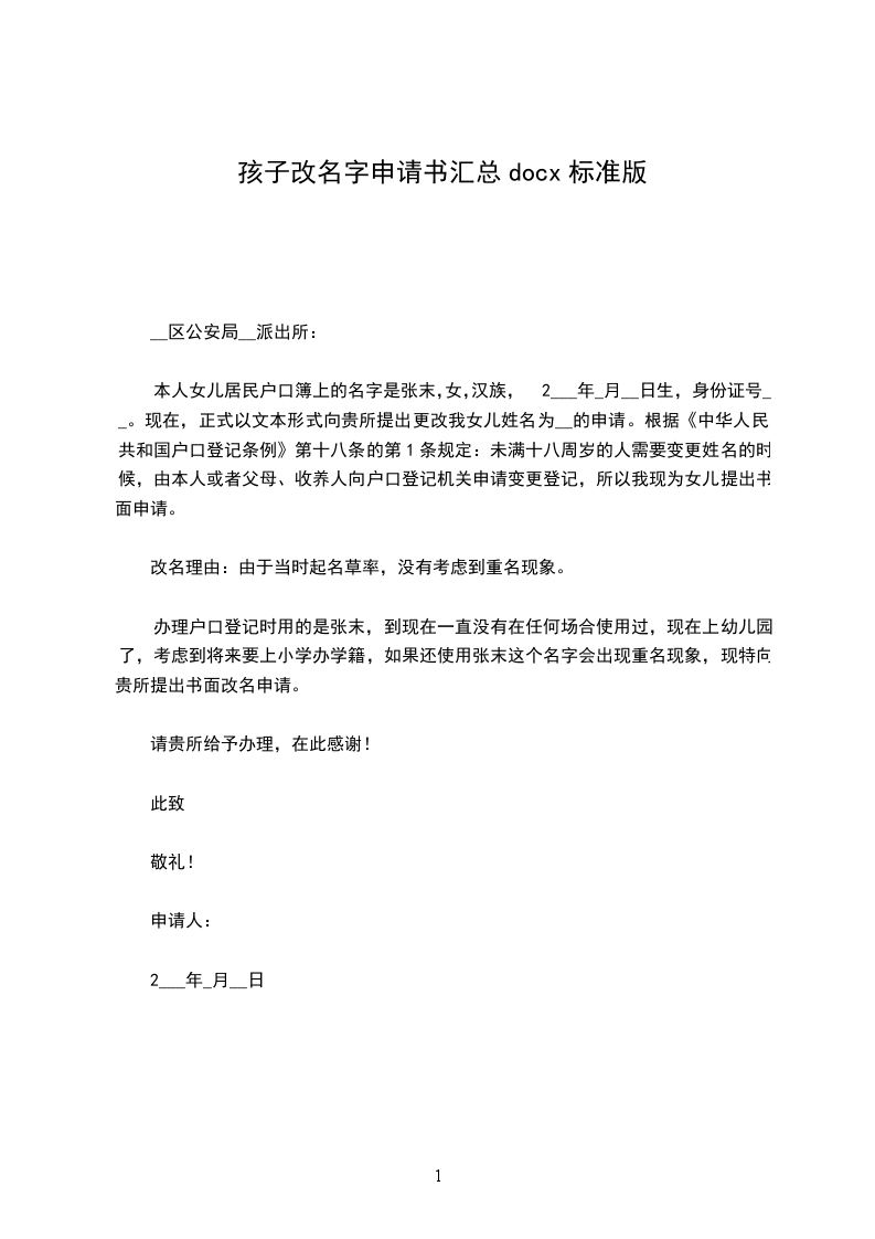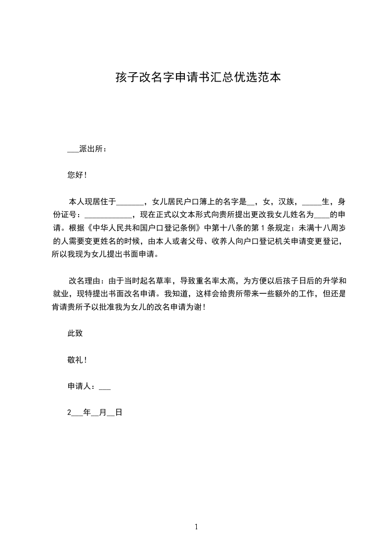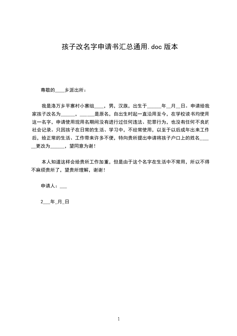我是洛万乡平寨村小寨组____,男,汉族,出生于______年__月__日。申请给我家孩子改名为______,______是原名,自出生时起一直沿用至今,在学校读书均使用这一名字,申请使用现用名期间没有进行过任何违法、犯罪行为,也没有任何不良的社会记录。只因孩子在日常的生活、学习中,不经常使用,以至于以后成年出来工作后,给正常的生活、工作带来许多不便,特向贵所提出申请将孩子户口上的姓名______更改为______,望同意为谢!