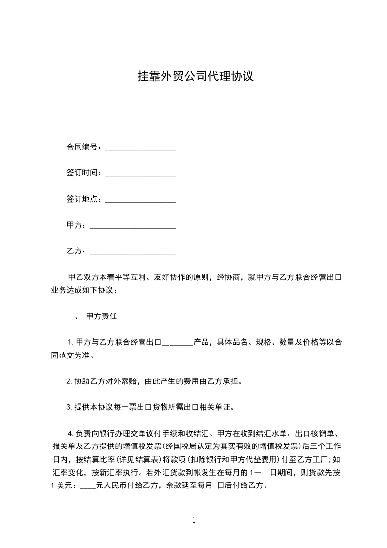 1.甲方与乙方联合经营出口________产品,具体品名、规格、数量及价格等以合同范文为准。