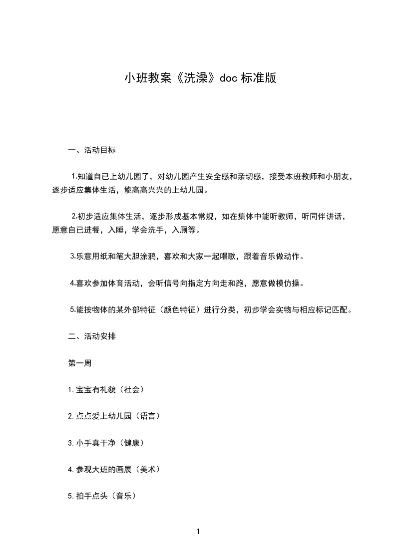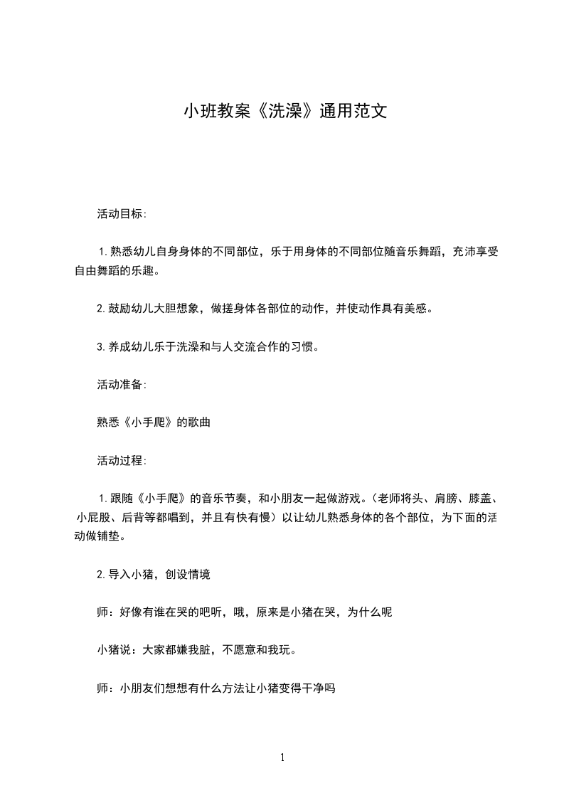 2、体验洗澡的快乐,了解洗澡的一般过程。