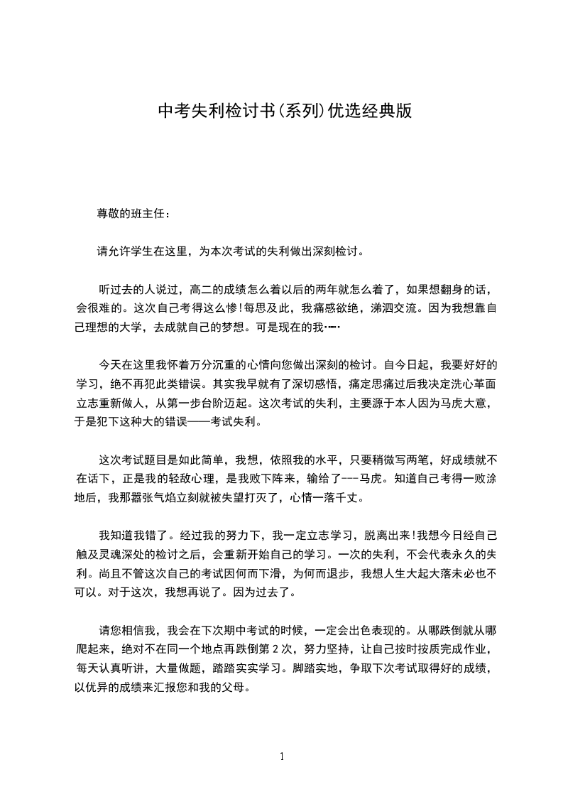 今天在这里我怀着万分沉重的心情向您做出深刻的检讨。自今日起,我要好好的学习,绝不再犯此类错误。其实我早就有了深切感悟,痛定思痛过后我决定洗心革面,立志重新做人,从第一步台阶迈起。这次考试的失利,主要源于本人因为马虎大意,于是犯下这种大的错误——考试失利。