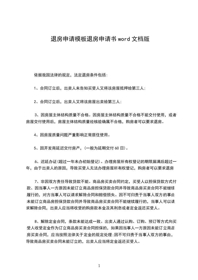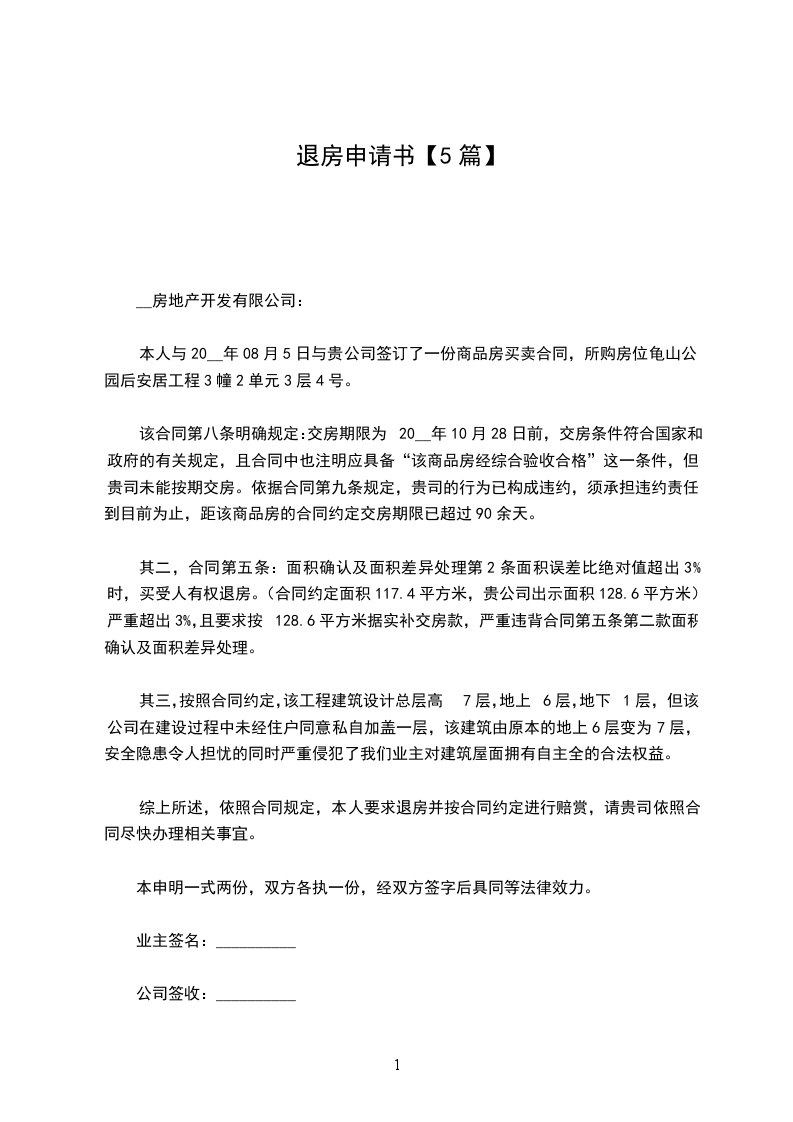三、商铺退房申请书