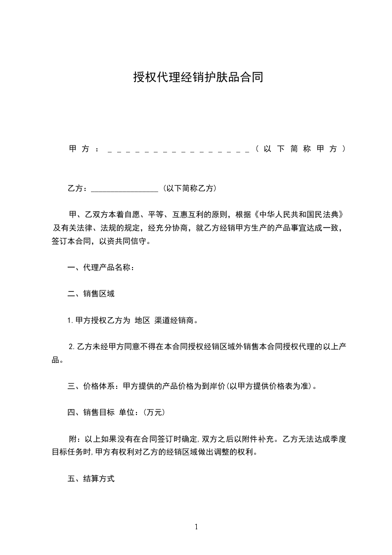 为了拓展市场,共同发展,根据国家有关法律,本着平等互利的原则,经双方友好协商,甲方授权乙方作为_____省__________市(地) ____________产品的独家经销商。