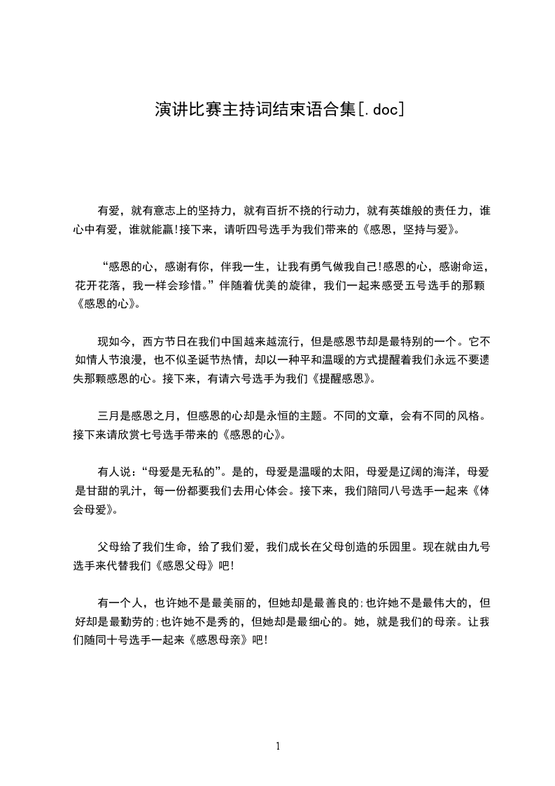 有一个人,也许她不是最美丽的,但她却是最善良的;也许她不是最伟大的,但好却是最勤劳的;也许她不是秀的,但她却是最细心的。她,就是我们的母亲。让我们随同十号选手一起来《感恩母亲》吧!