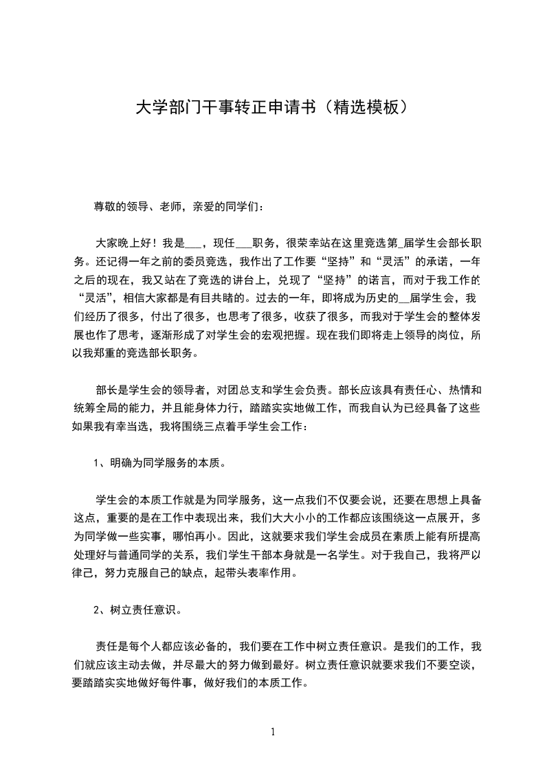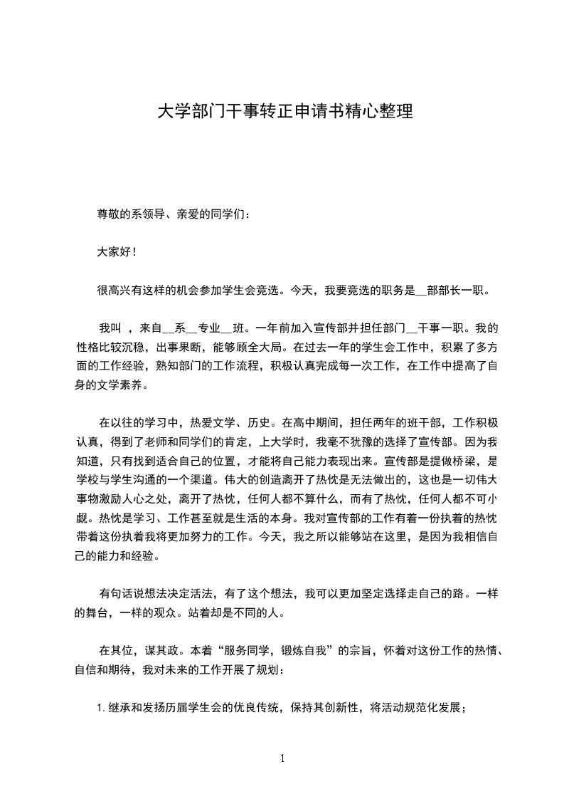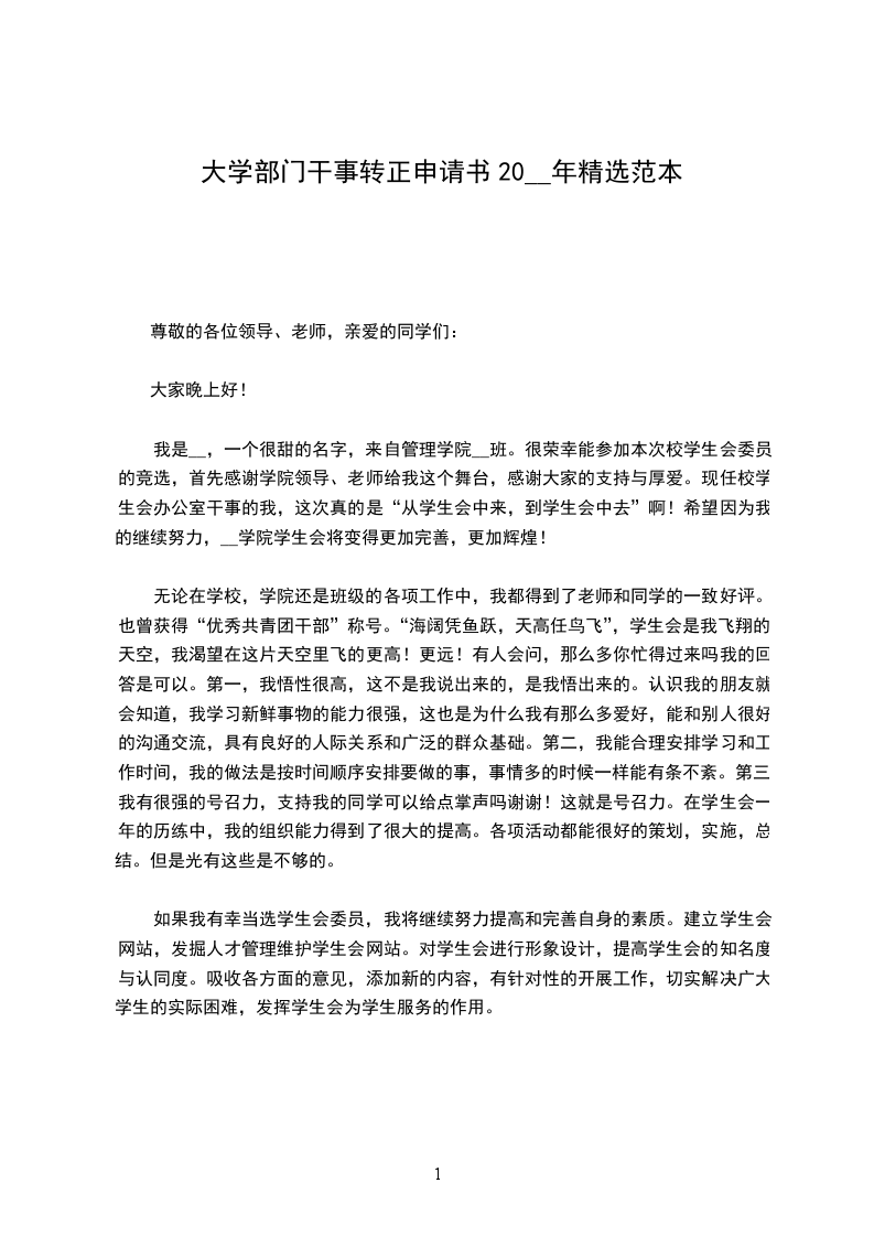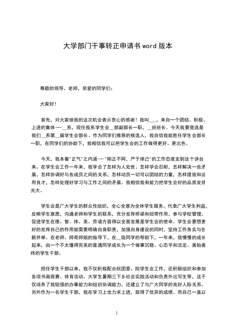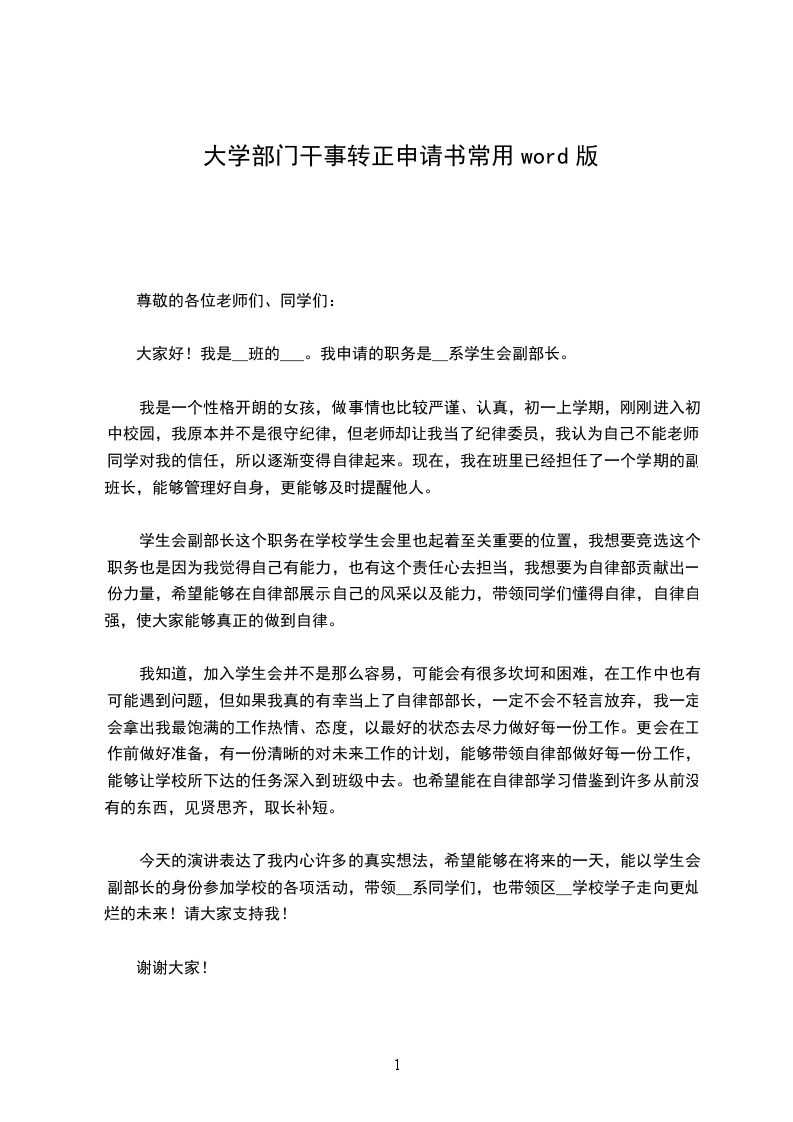 大家好!我是__班的___。我申请的职务是__系学生会副部长。