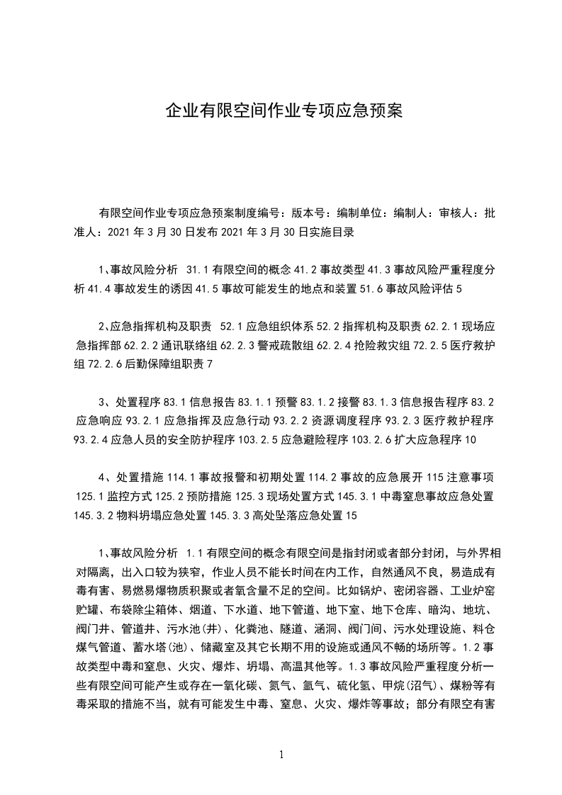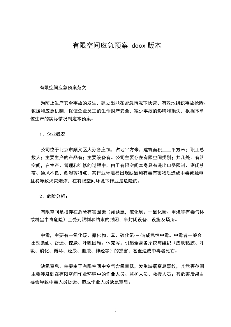 公司位于北京市顺义区大孙各庄镇,占地平方米,建筑面积____平方米;职工总数人;主要生产的产品有;主要设备有。公司主要存在有限空间类别;共几处。有限空间,在生产、管理和维修的过程中,由于有限空间本身具有进出口受限制、密闭狭窄、通风不良、潮湿等特点,其作业环境易出现缺氧和有毒有害物质造成中毒或触电,且易导致火灾爆炸,在有限空间环境下作业是危险的。