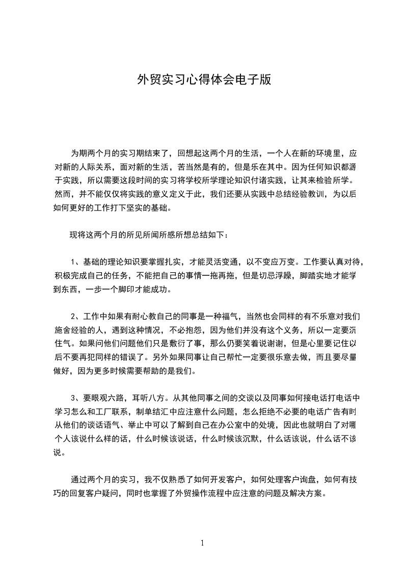 再次,我要总结一下自己在实习期间的体会。