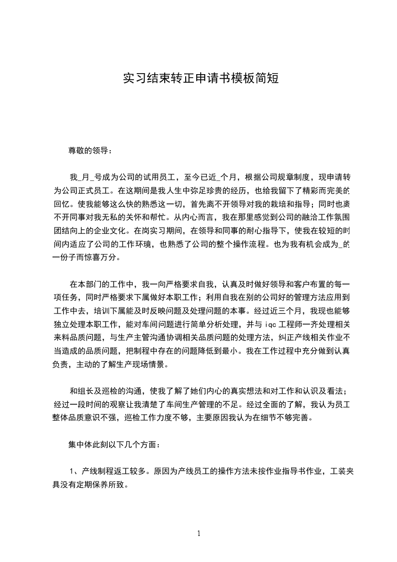 我于__年7月3日很荣幸的成为百货的试用员工,到今天1个月试用期已满,现申请转为百货正式员工。