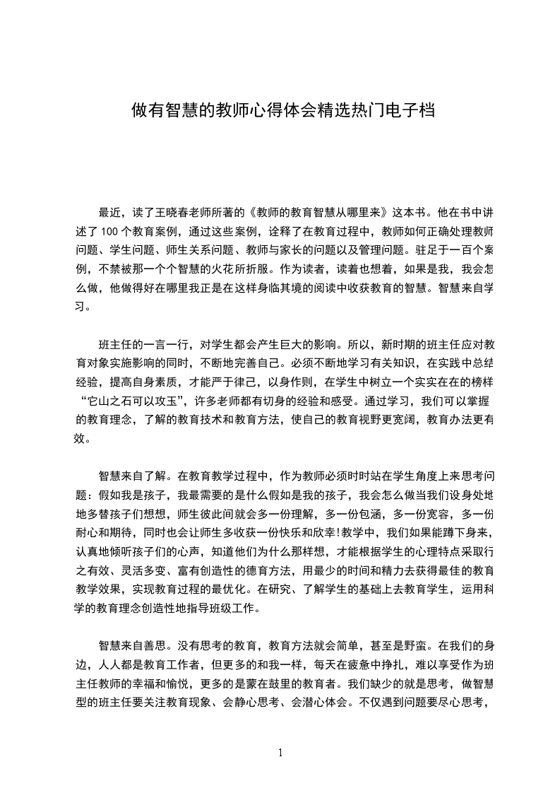 最近,读了王晓春老师所著的《教师的教育智慧从哪里来》这本书。他在书中讲述了100个教育案例,通过这些案例,诠释了在教育过程中,教师如何正确处理教师问题、学生问题、师生关系问题、教师与家长的问题以及管理问题。驻足于一百个案例,不禁被那一个个智慧的火花所折服。作为读者,读着也想着,如果是我,我会怎么做,他做得好在哪里我正是在这样身临其境的阅读中收获教育的智慧。智慧来自学习。