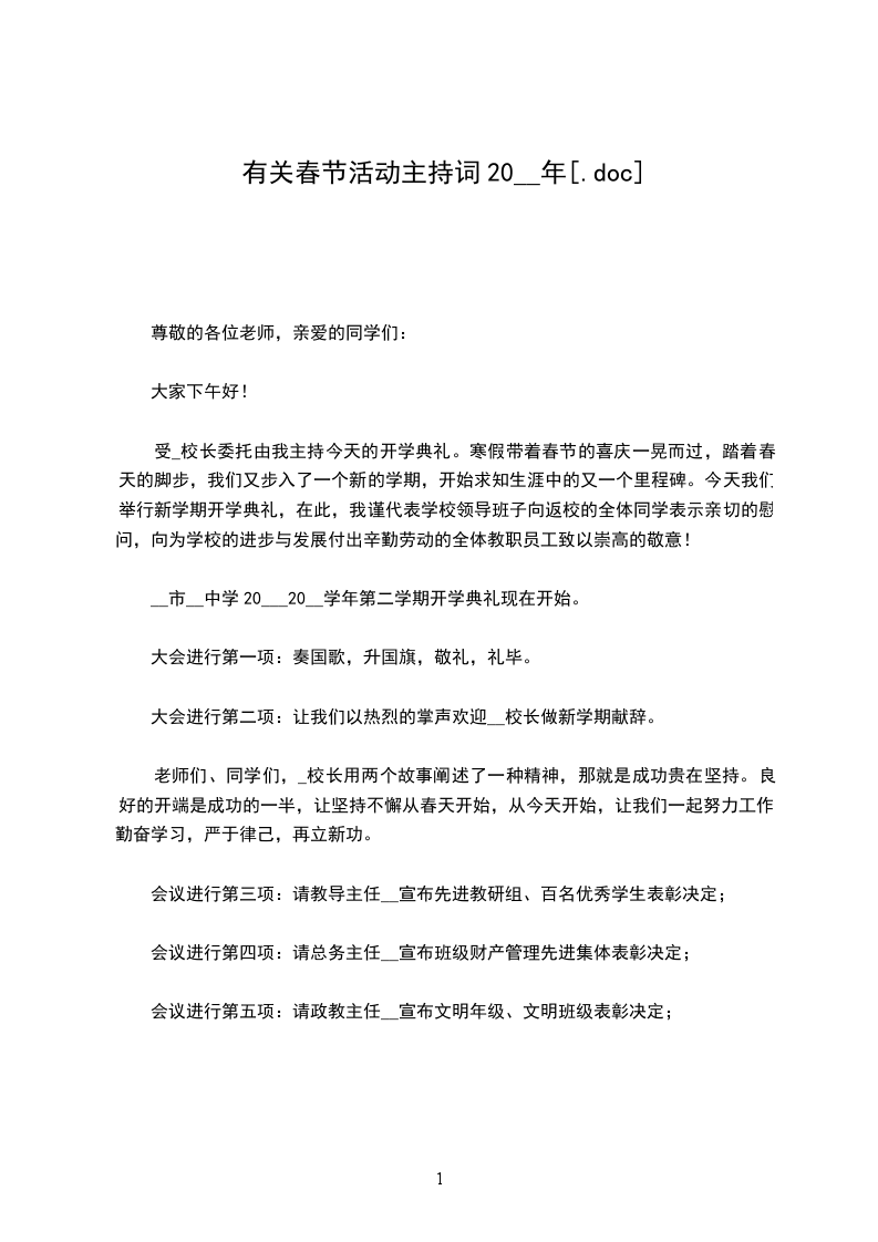 受_校长委托由我主持今天的开学典礼。寒假带着春节的喜庆一晃而过,踏着春天的脚步,我们又步入了一个新的学期,开始求知生涯中的又一个里程碑。今天我们举行新学期开学典礼,在此,我谨代表学校领导班子向返校的全体同学表示亲切的慰问,向为学校的进步与发展付出辛勤劳动的全体教职员工致以崇高的敬意!