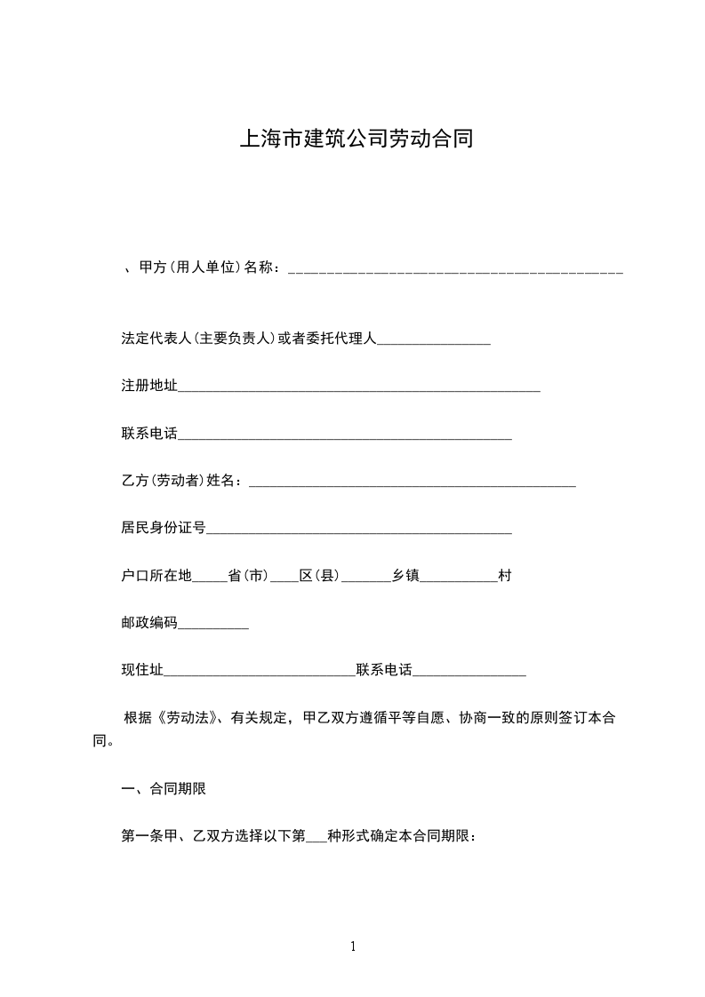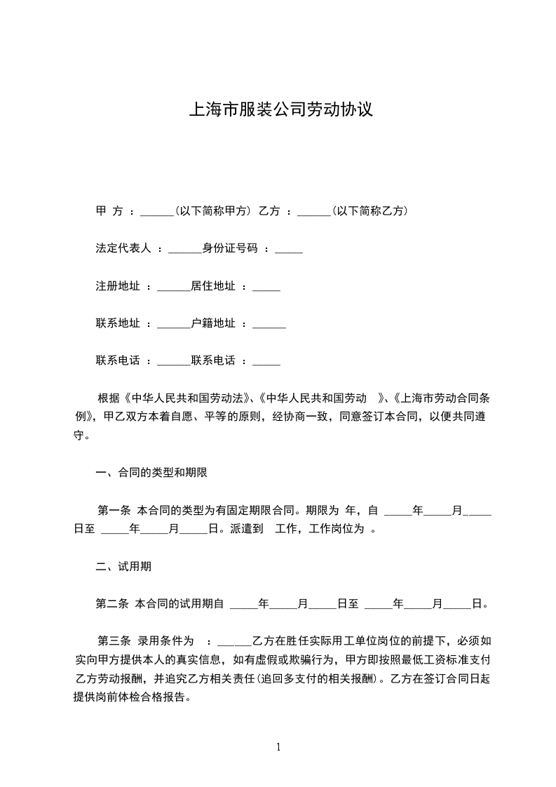 现居住地:____________________________________ 甲方因生产工作需要,录用乙方为甲方劳动合同制员工。 甲乙双方根据《中华人民共和国劳动法》、《上海市劳动合同规定》及《上海市劳动合同条例》,本着平等、自愿、协商一致的原则,依法签订本劳动合同。 第一条协议期限