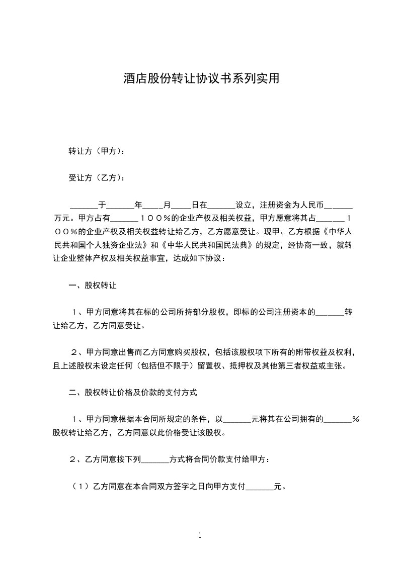 2、土地使用权和厂房建筑物及设备转让共计元整(金额大写___元)。
