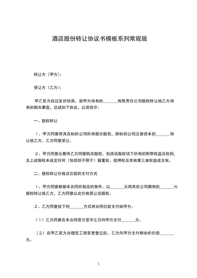 二、转让范围及价款