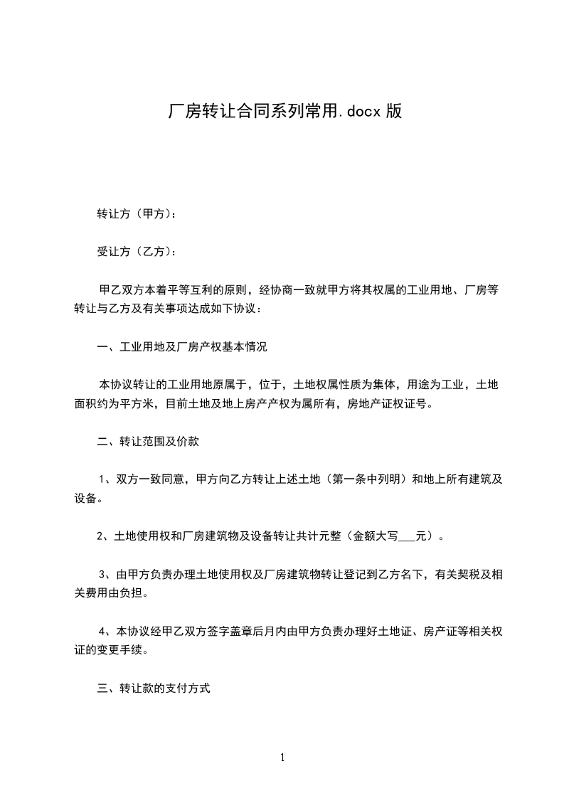 甲乙双方本着平等互利的原则,经协商一致就甲方将其权属的工业用地、厂房等转让与乙方及有关事项达成如下协议: