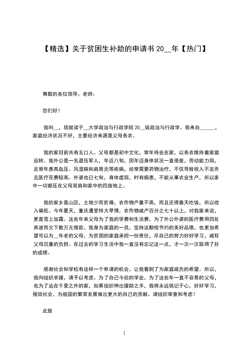 为了顺利完成学业,我需要和希望得到学校经济上的帮助—兹申请贫困生助学金。