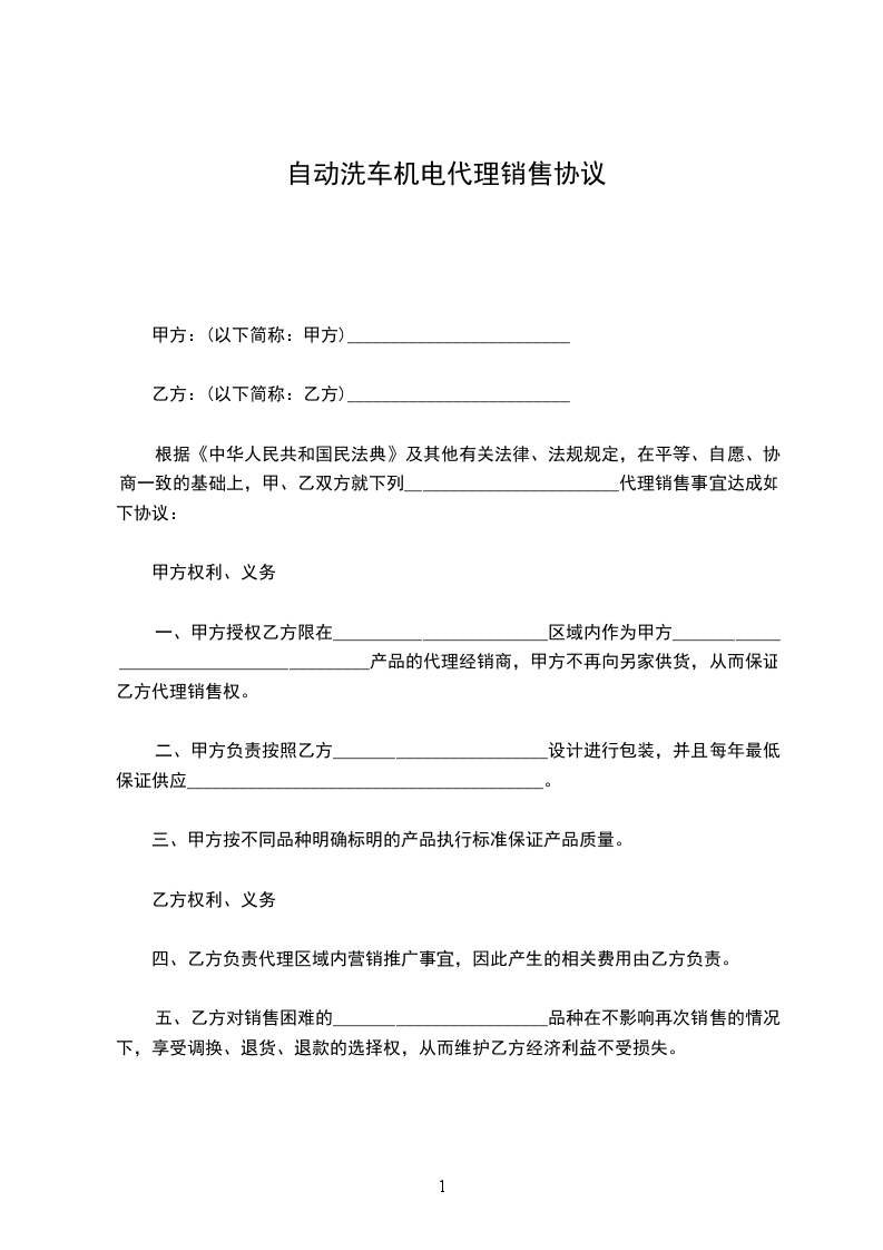 1、甲方授权乙方为_________地区的独家代理商,全面负责该地区的销售和经销商管理。