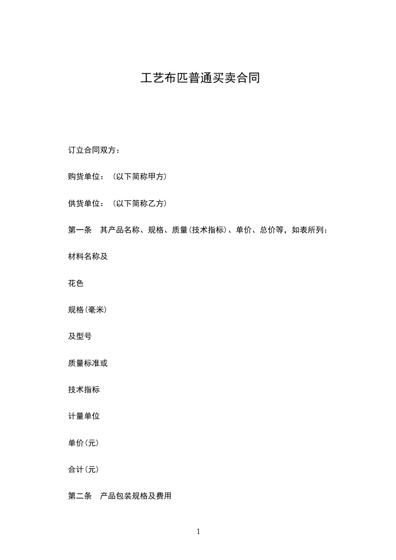 第一条 其产品名称、规格、质量(技术指标)、单价、总价等,如表所列: