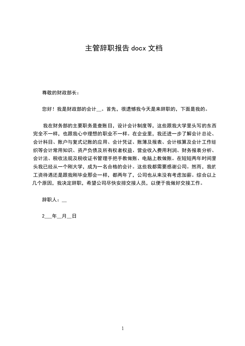 您好!我是财政部的会计__。首先,很遗憾我今天是来辞职的,下面是我的。