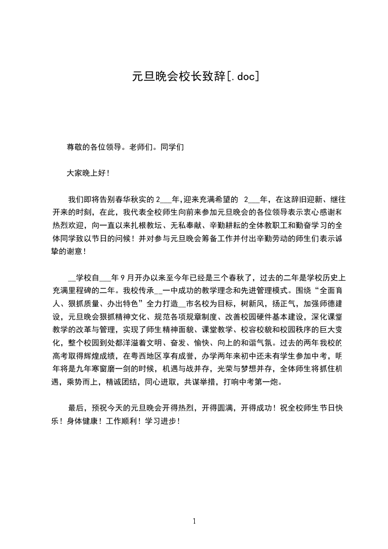 我们即将告别春华秋实的2___年,迎来充满希望的2___年,在这辞旧迎新、继往开来的时刻,在此,我代表全校师生向前来参加元旦晚会的各位领导表示衷心感谢和热烈欢迎,向一直以来扎根教坛、无私奉献、辛勤耕耘的全体教职工和勤奋学习的全体同学致以节日的问候!并对参与元旦晚会筹备工作并付出辛勤劳动的师生们表示诚挚的谢意!