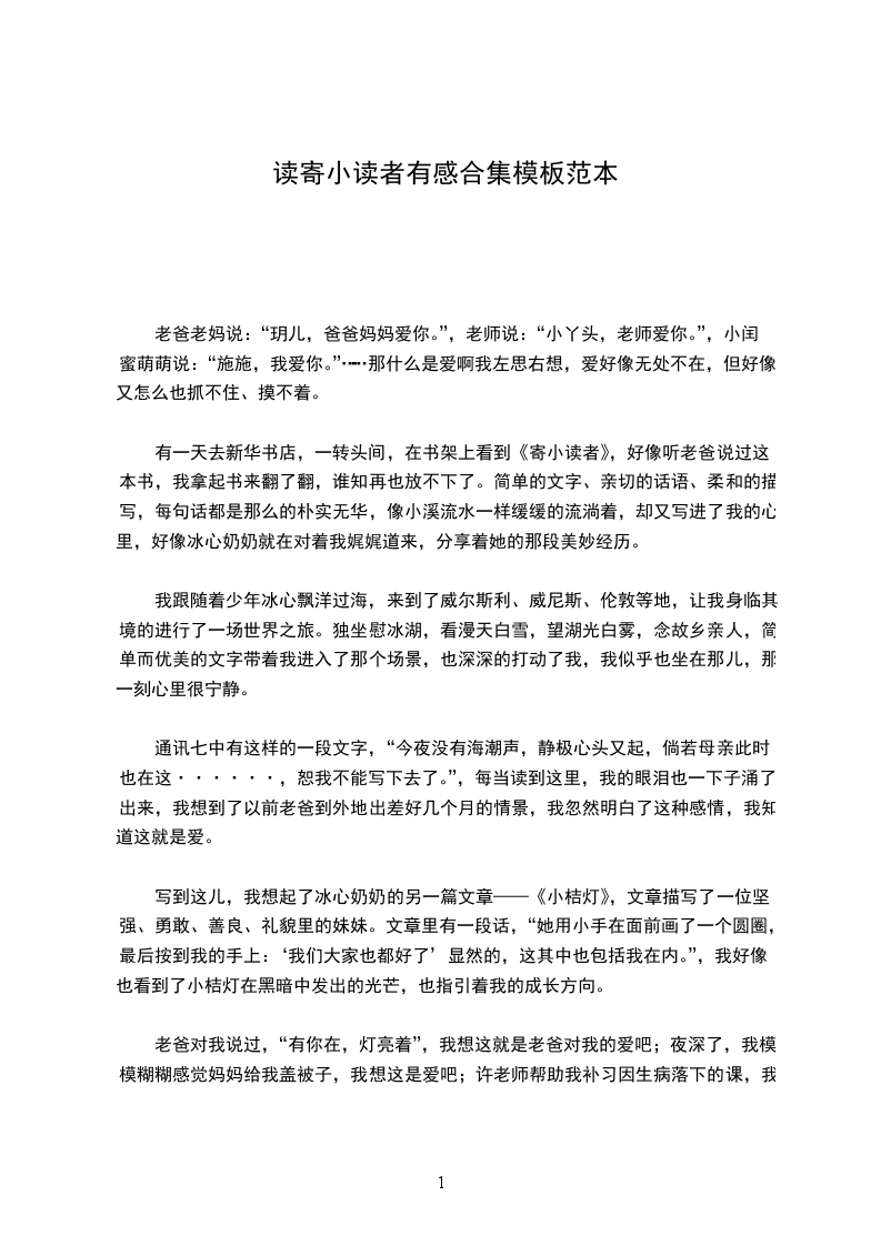 在寒假里,我读了一本叫《寄小读者》的书。相信大家对这本书应该不陌生,对了!其实这就是冰心写的一篇十分有名的书。